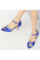 Blue Satin Heels with Elegant Silver Buckle and Rhinestone Detail