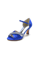 Expertly designed with an elegant silver buckle and rhinestone detail, these Blue Satin Heels offer both style and durability. The open-toe design adds a modern touch, while the chunky 3.35-inch heels provide stability and comfort. The one-buckle strap closure allows for an adjustable and secure fit, making them perfect for any occasion. Lined with soft artificial leather and featuring a durable rubber sole, these heels are both fashionable and practical for every step.