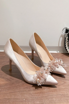 Blush Beaded Stiletto Pointy Heels