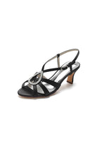 These fashionable slip-on heels showcase an air of sophistication with the addition of rhinestone embellishments that bring a touch of dazzle to any ensemble. The sturdy heels provide stability and ease, measuring up to a practical 2.36 inches. The open-toe design promotes both breathability and style, making them ideal for warm weather or formal events. Crafted with an artificial leather lining for a comfortable fit and a durable rubber base for a secure grip, these shoes make a versatile and elegant addition to any wardrobe.