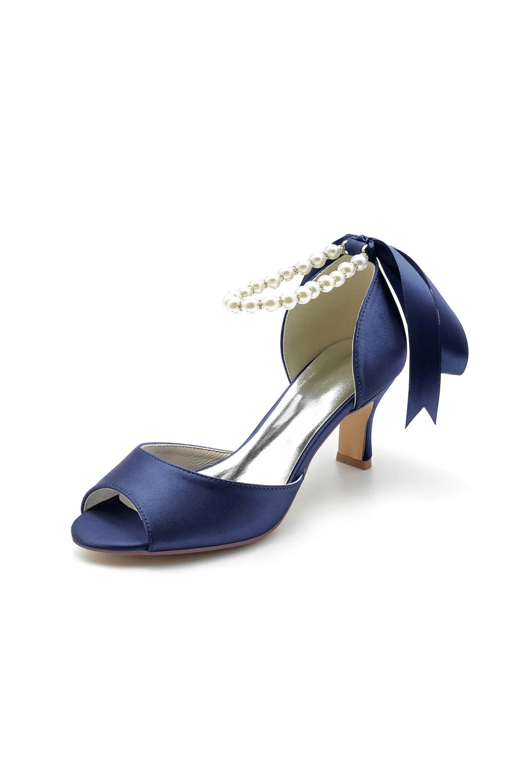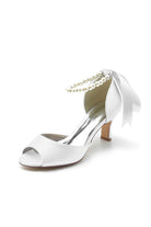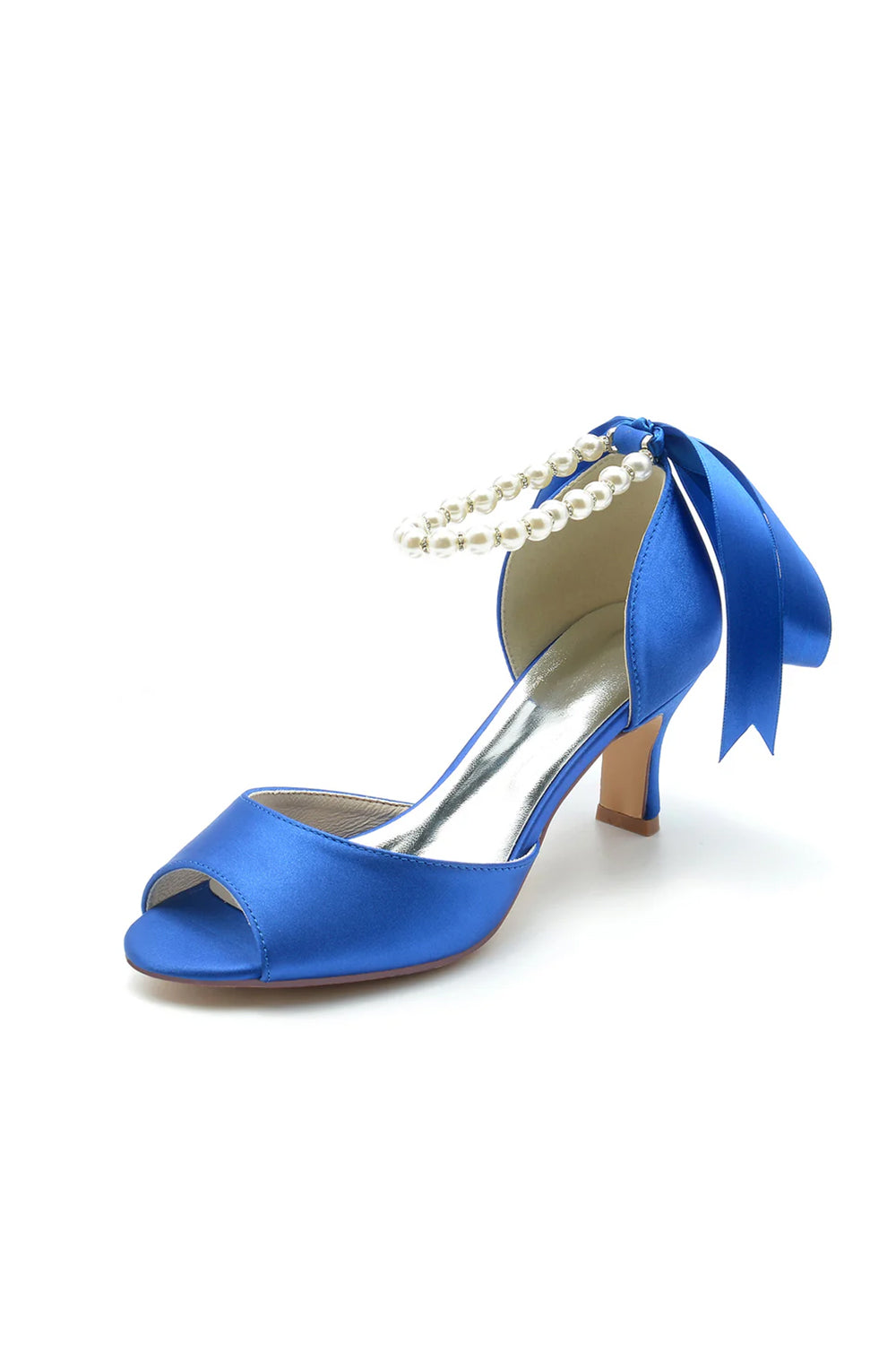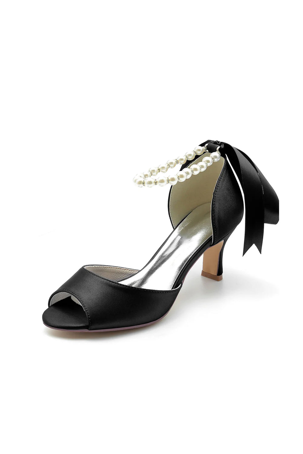 Chic Peep Toe Ribbons Faux Pearl Pumps