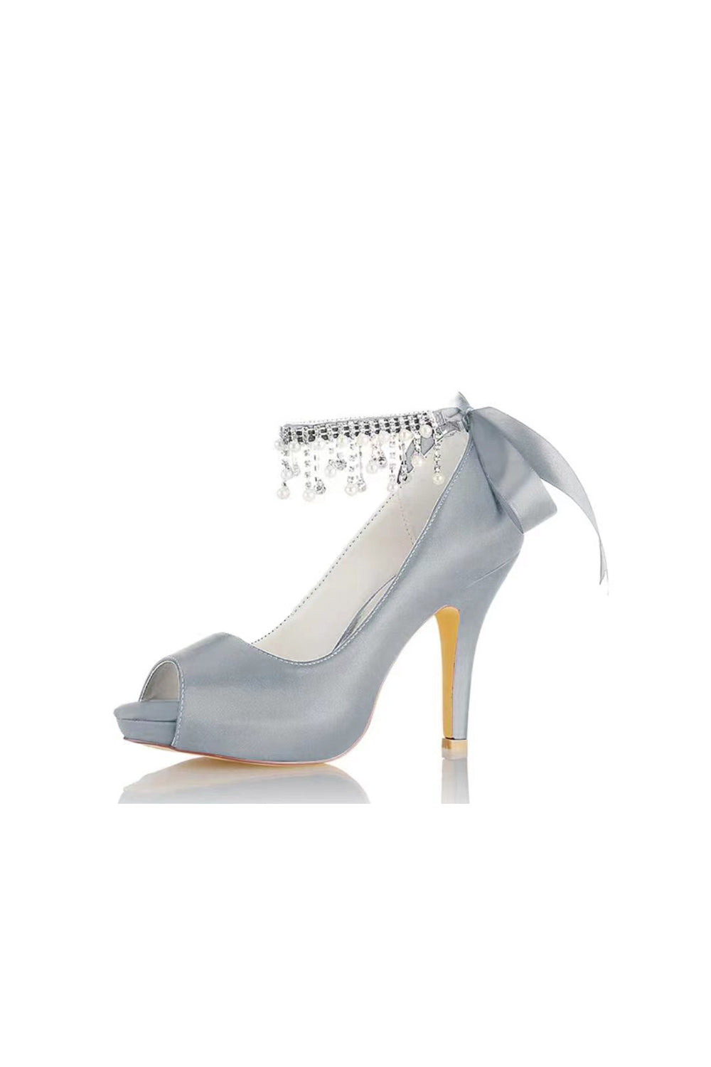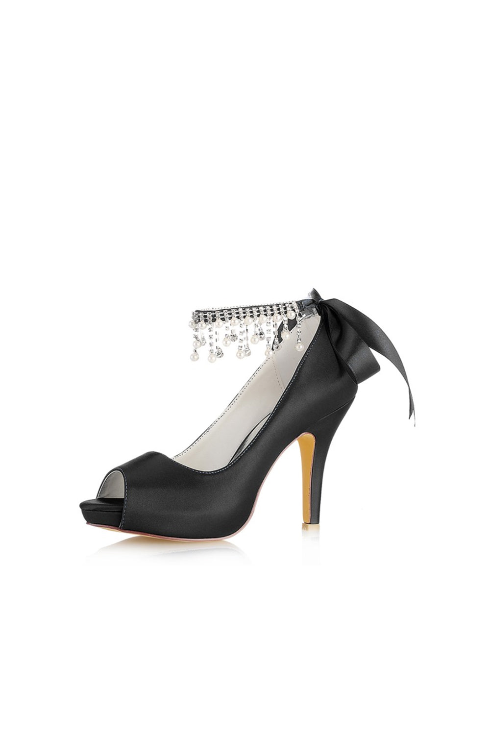 Chic Peep Toe Ribbons Faux Pearl Strap Pumps