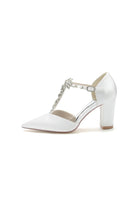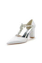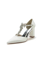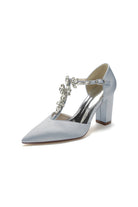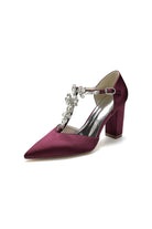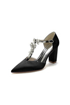Chic Rhinestone Pointed Toe Ankle Strap Buckle Chunky Heel