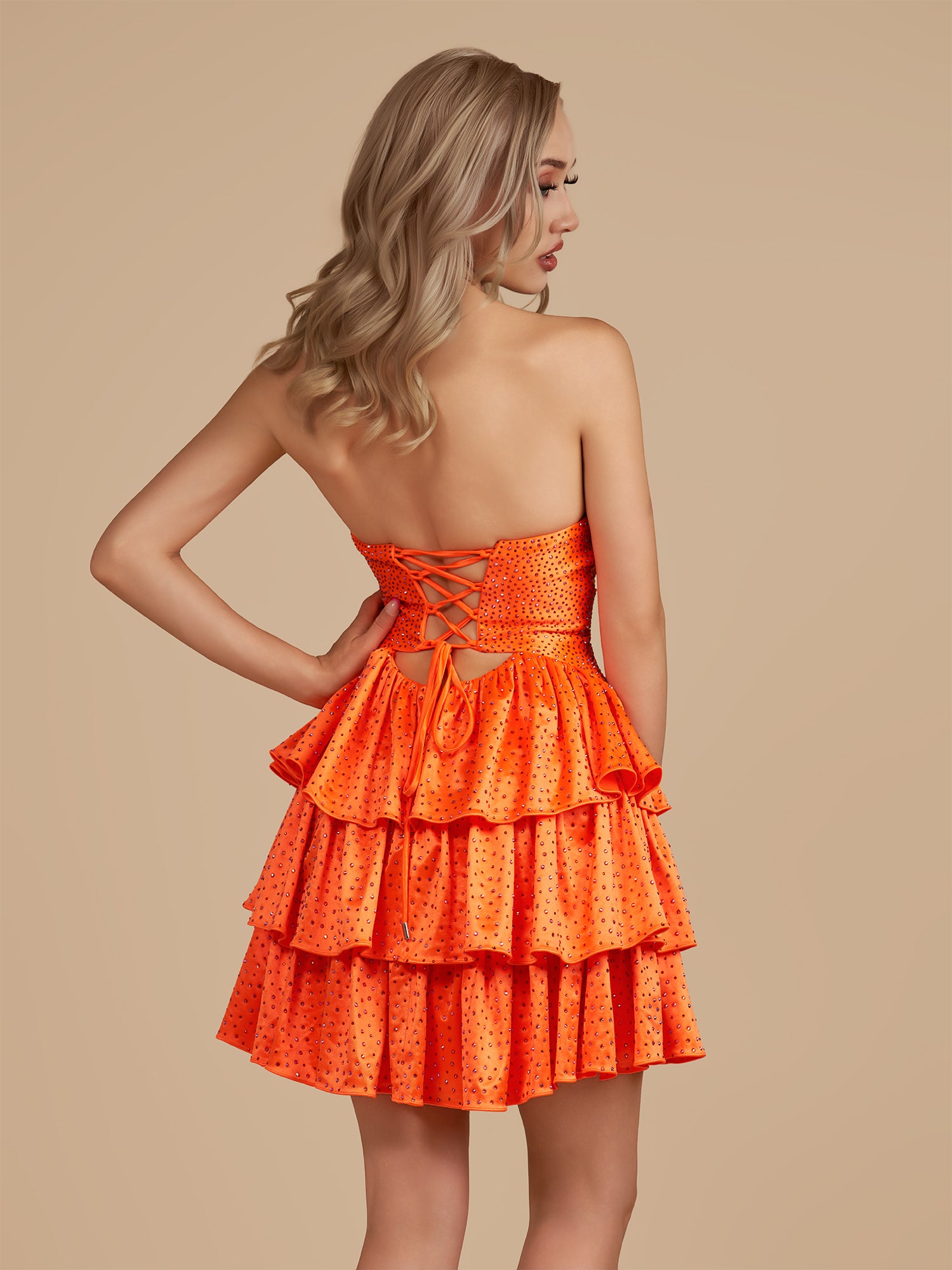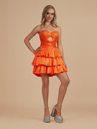 Cindra | Orange - A Line Sweetheart Satin Cut Out Ruffled Homecoming Dress with Beads