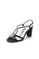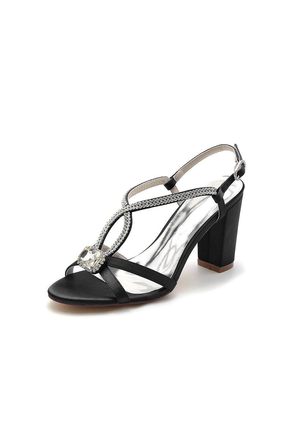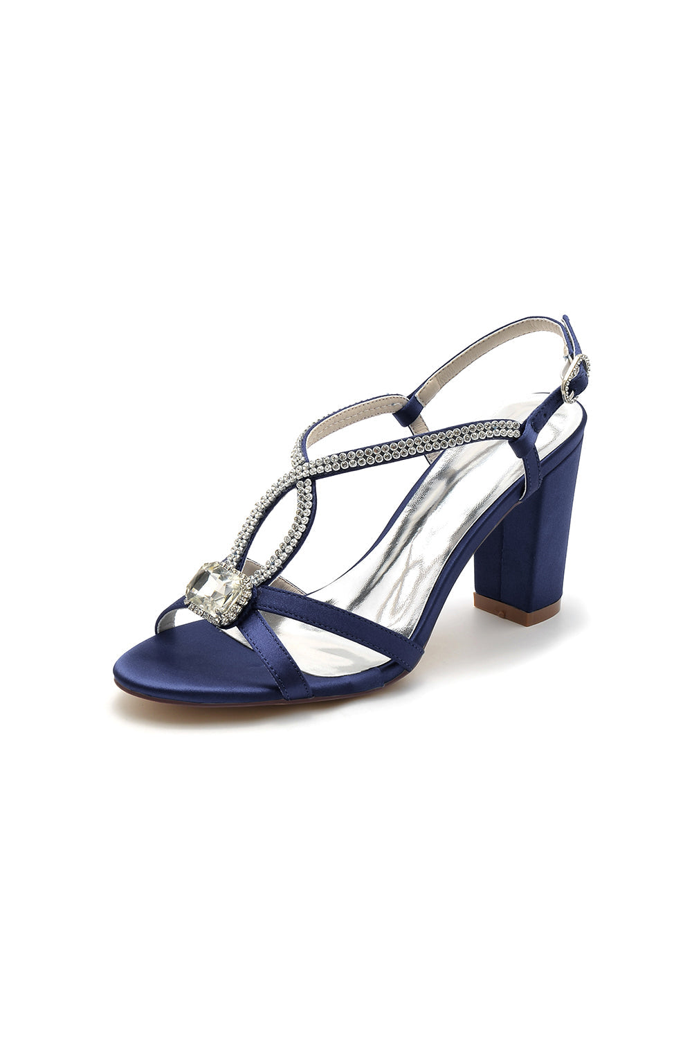 These stunning heels feature a luxurious satin upper and are embellished with shimmering rhinestones across the front strap, perfect for making a statement at weddings, galas, or formal events. The adjustable ankle strap with a rhinestone buckle adds both elegance and security, ensuring a perfect fit. With a graceful heel and open-toe design, these shoes offer sophistication and glamour. The smooth artificial leather lining provides comfort, while the durable rubber sole ensures stability for any occasion. Elevate your style effortlessly with these dazzling heels.