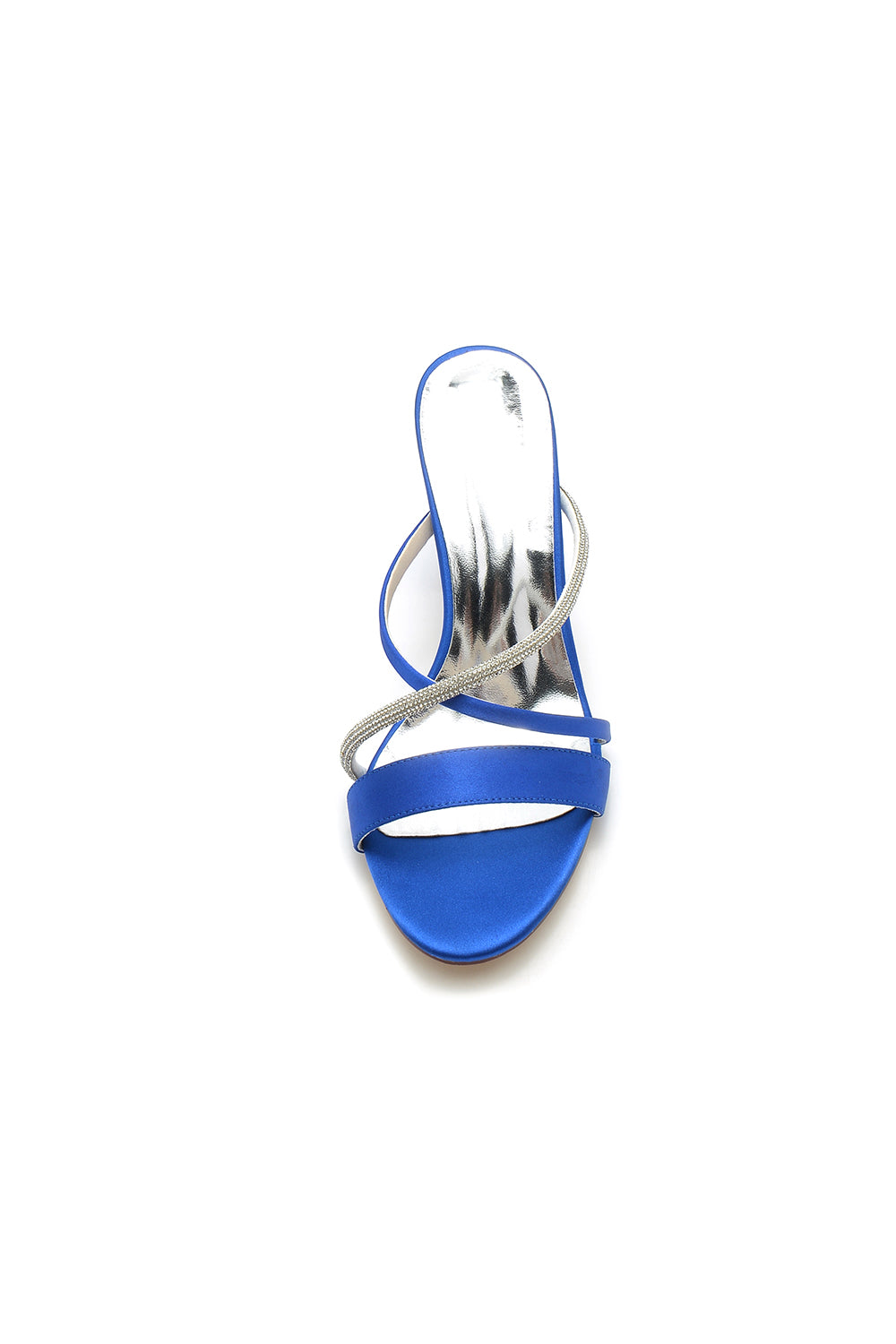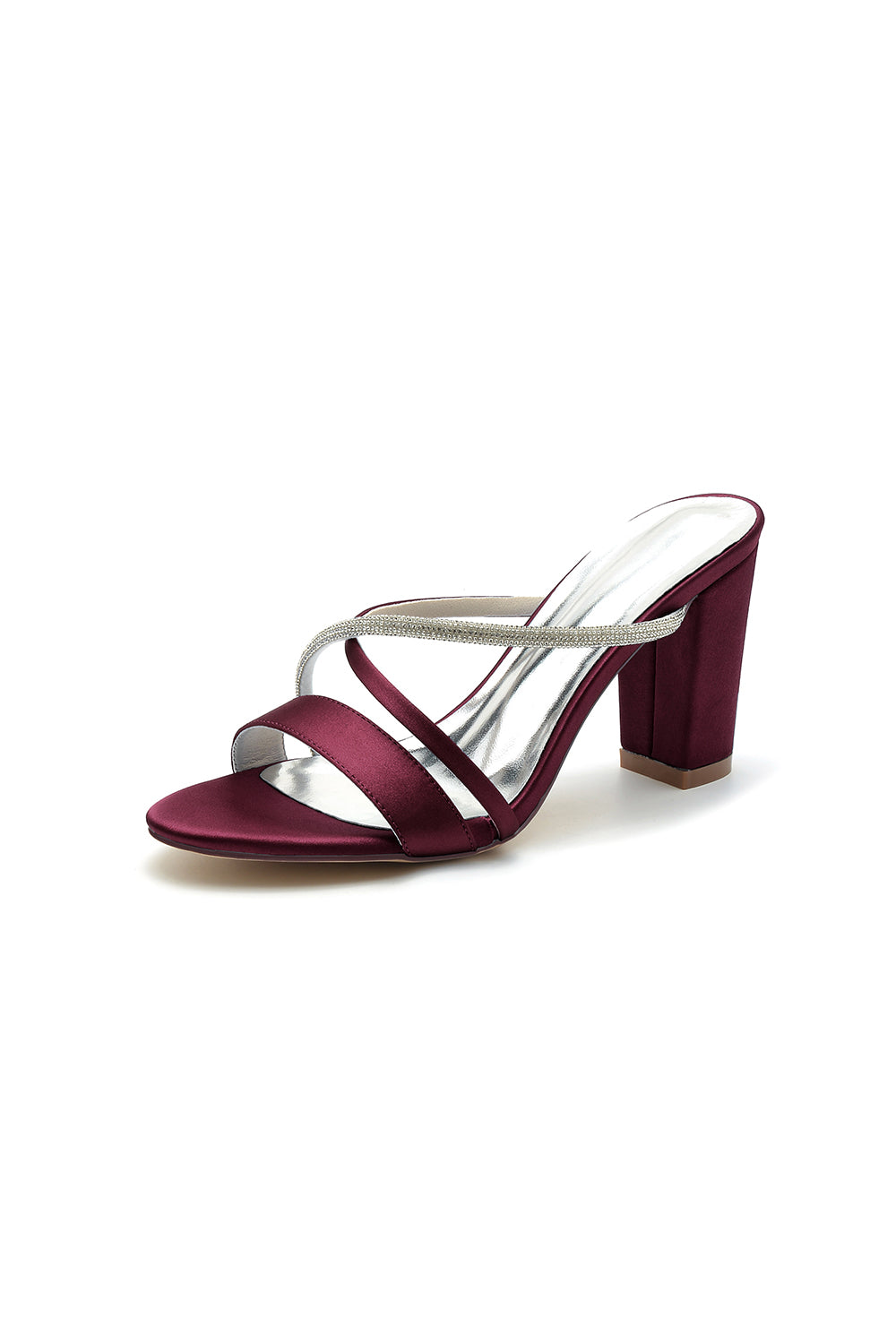 These stunning heels feature a luxurious satin upper and are embellished with shimmering rhinestones across the front strap, perfect for making a statement at weddings, galas, or formal events. The adjustable ankle strap with a rhinestone buckle adds both elegance and security, ensuring a perfect fit. With a graceful heel and open-toe design, these shoes offer sophistication and glamour.?