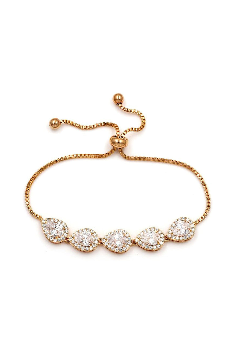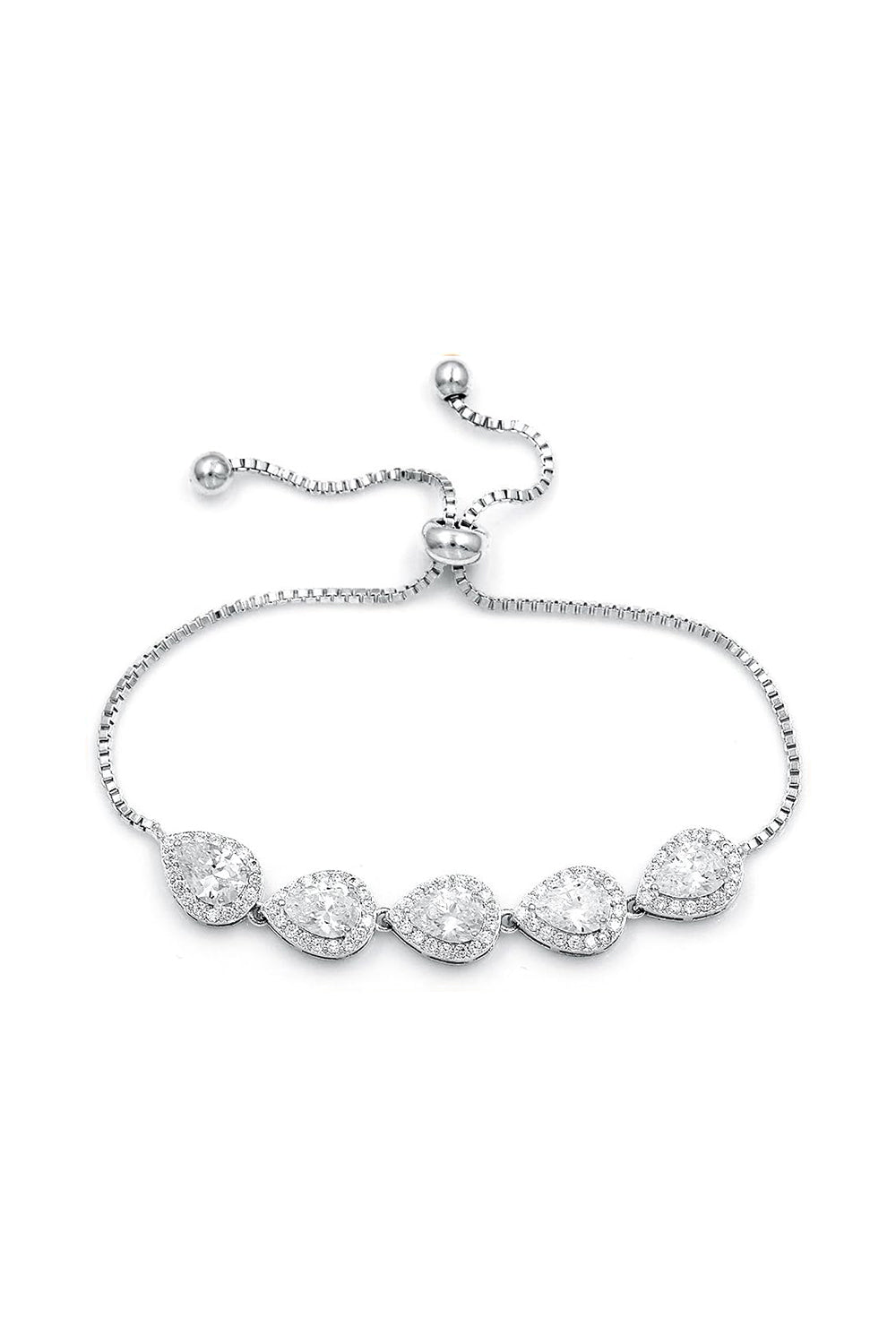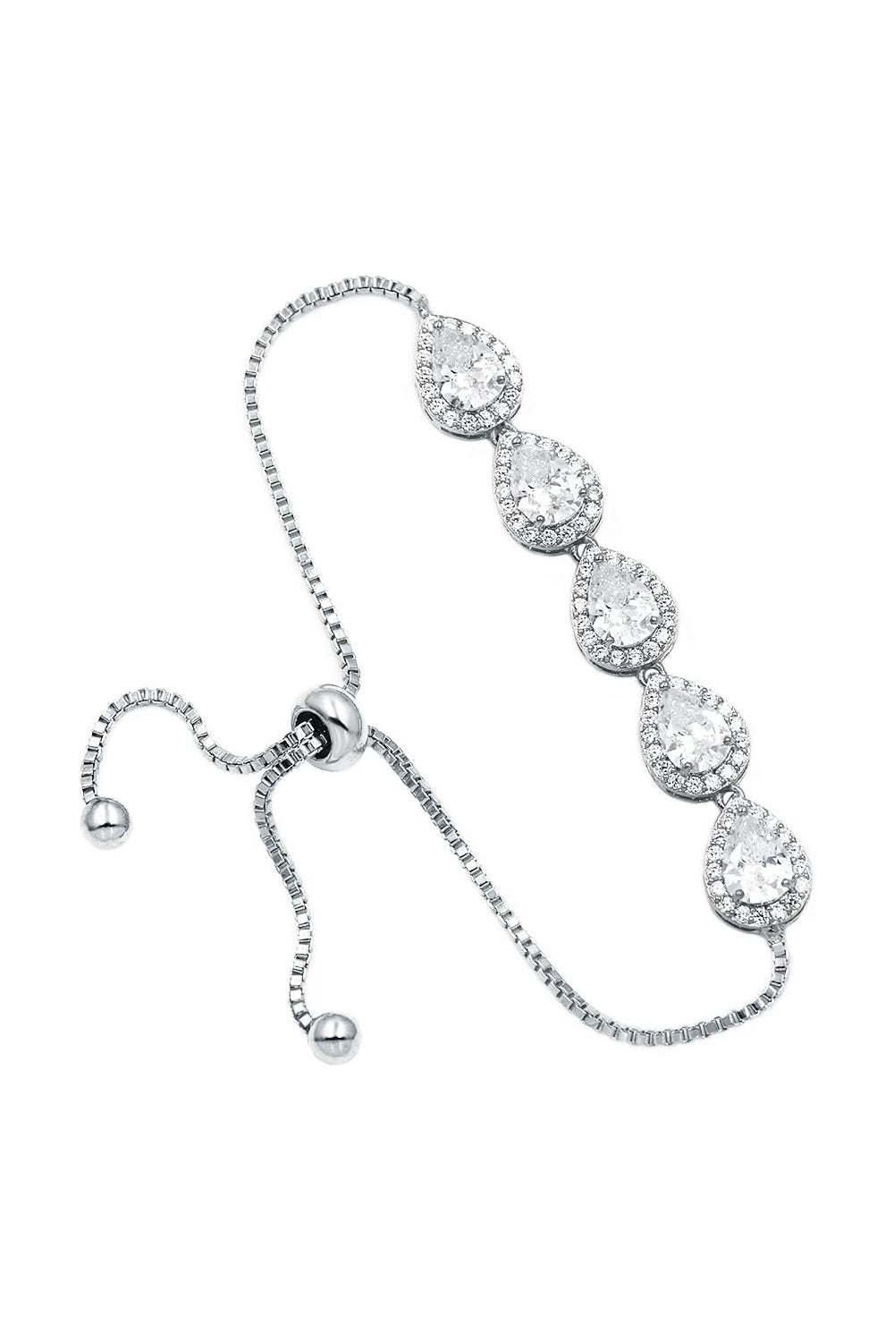 Crystal Adjustable Silver Teardrop Chain Bracelets with Rhinestone