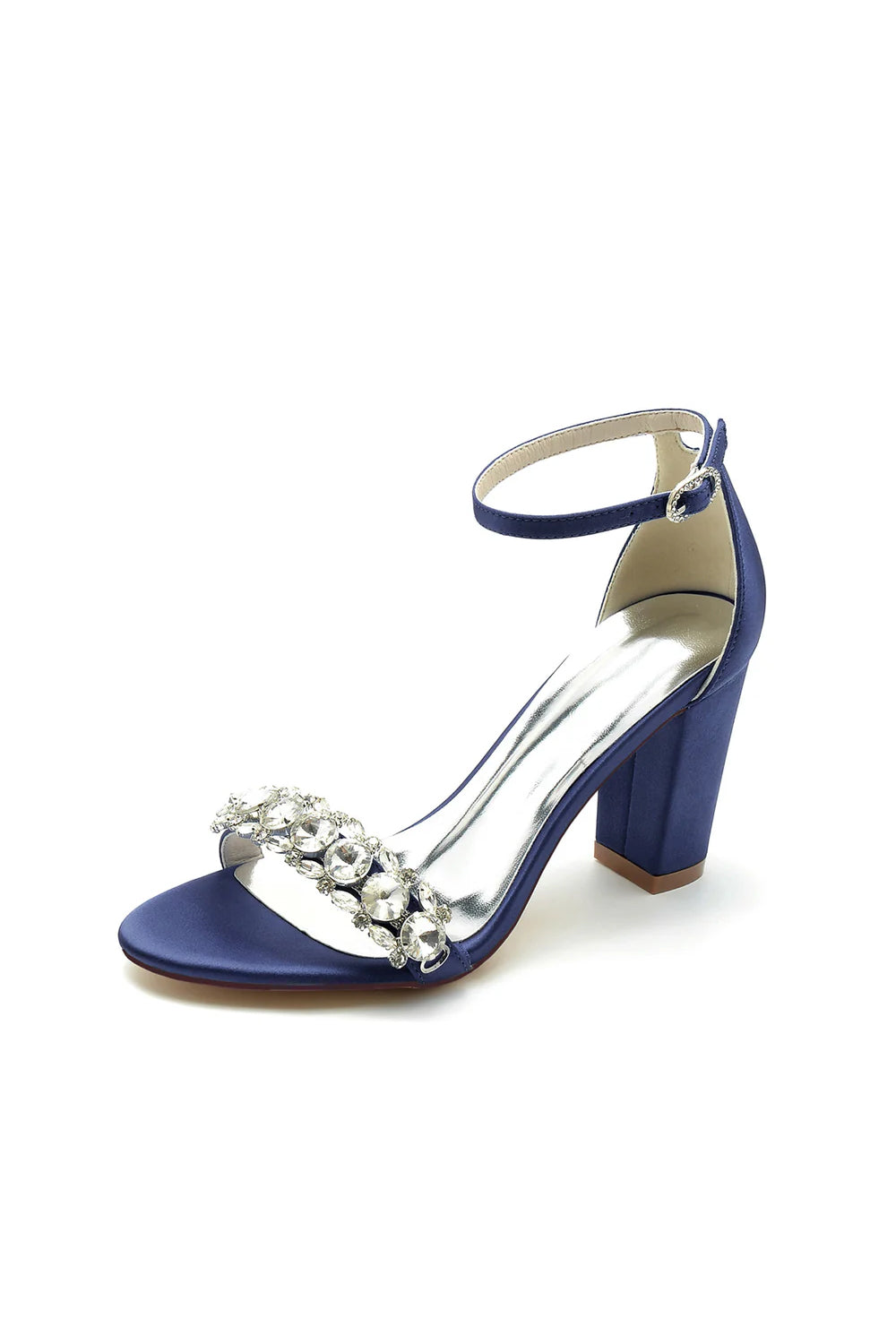 Crystal Embellished Open Toe Ankle Strap Pumps