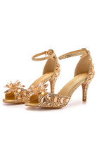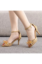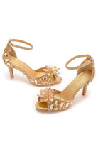 Crystal Rhinestone Decor Peep Toe Stiletto Ankle Strap High Heels