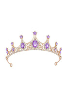 Handmade from durable alloy and rhinestone, this gold tiara boasts a beautiful purple crystal crown. Practical yet elegant with a hard texture, this well-made and solid headpiece is the perfect accessory for your special day.