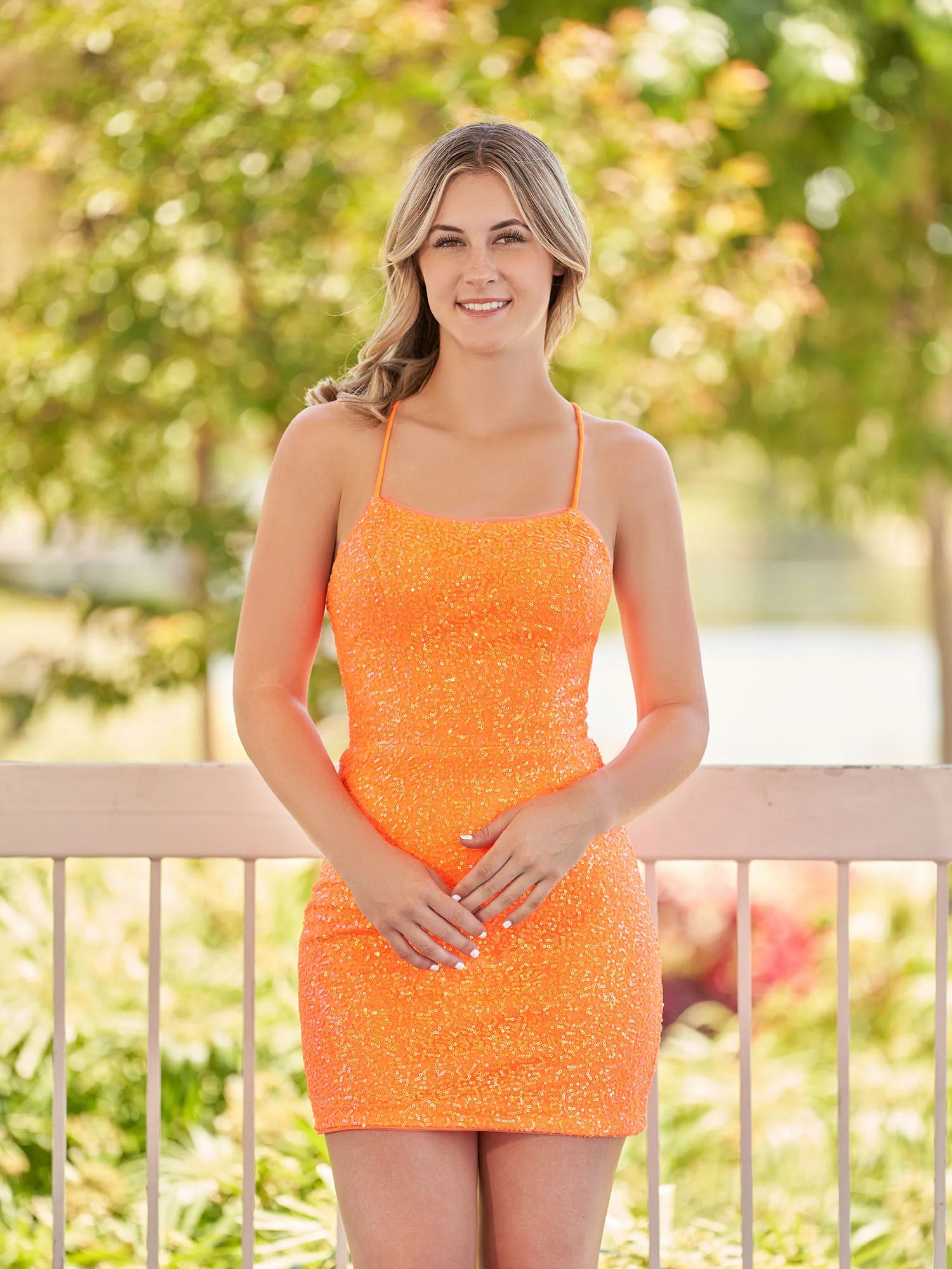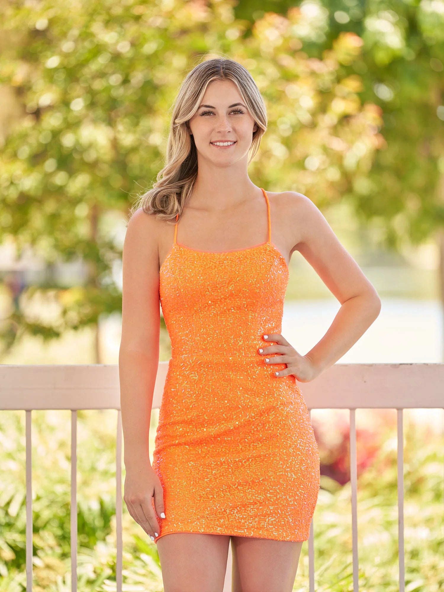 Evoke a sense of unforgettable charm with Esme, a homecoming dress sculpted to perfection. This fuchsia masterpiece, tailored in a figure-hugging bodycon silhouette, promises to spotlight your impeccable taste and style. Its sequin fabric sparkles brilliantly, reflecting a constellation of stars, making you the center of attention at any event. The minimalist scoop neckline, complemented by delicate spaghetti straps, presents an understated elegance, allowing the dress's vibrant color and shimmer to shine forth. Esme isn't just about the front though; turn around to reveal a seductive criss-cross lace-up back that adds a hint of allure, ensuring you look stunning from every angle.
