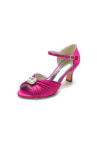 This pair of elegant pumps is embellished with attractive rhinestone details that add a touch of glamour to any ensemble. With a sturdy chunky heel measuring 2.36 inches, these heels provide a comfortable lift and steady support for all-day wear. The open-toe design allows for breathability and a chic appearance, while the one-buckle strap closure ensures a secure and customizable fit. The artificial leather lining offers a soft and comfortable feeling, and the durable rubber sole provides reliable traction. Perfect for both formal events and daily wear, these pumps effortlessly blend sophistication and functionality.