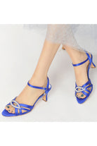 Elegant Royal Blue Satin Pump with Silver Buckle and Crystal Accent
