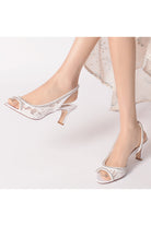 Enhance your formal or special occasion outfit with our White Elegant High Heels, showcasing a polished and sophisticated design that complements any attire. Made with a glossy white surface, these heels exude a sense of purity and refinement. The slim and tall heel adds height and elongates your legs, creating a stunning silhouette. The crossed ankle strap provides a secure fit and adds a fashionable touch to the design. Decorated with an array of clear crystals and silver metal accents, arranged in a straight line from the ankle to the center of the shoe, these embellishments catch the light beautifully, adding a touch of sparkle and glamour to your ensemble.