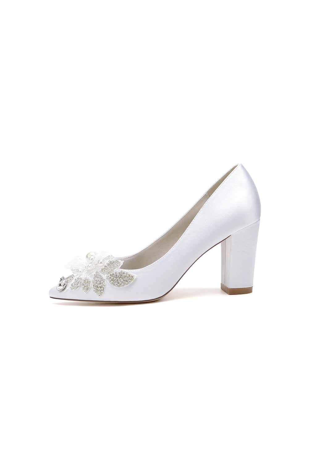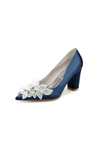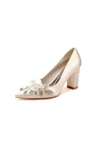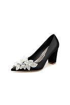 Elevate your style with these Floral Beaded Pointed Toe Chunky Heels. The intricate floral beading adds a touch of elegance, while the pointed toe and chunky heel provide comfort and stability. Perfect for any formal or special occasion, these heels are a must-have for your wardrobe.