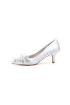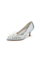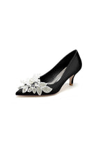 Elevate your elegance with these stunning Floral Beading Pointed Toe Satin Kitten Heels. Crafted from luxurious satin, these heels feature intricate floral beadwork that adds a touch of sparkle and sophistication. The pointed-toe design elongates the legs, while the kitten heel offers the perfect balance of style and comfort for long-lasting wear. Ideal for weddings, formal events, or evening occasions, these slip-on heels are a graceful addition to any ensemble. Perfect for the modern woman who values both beauty and comfort.