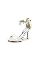 Enhance your formal or special occasion outfit with our White Elegant High Heels, showcasing a polished and sophisticated design that complements any attire. Made with a glossy white surface, these heels exude a sense of purity and refinement. The slim and tall heel adds height and elongates your legs, creating a stunning silhouette. The crossed ankle strap provides a secure fit and adds a fashionable touch to the design. Decorated with an array of clear crystals and silver metal accents, arranged in a straight line from the ankle to the center of the shoe, these embellishments catch the light beautifully, adding a touch of sparkle and glamour to your ensemble.