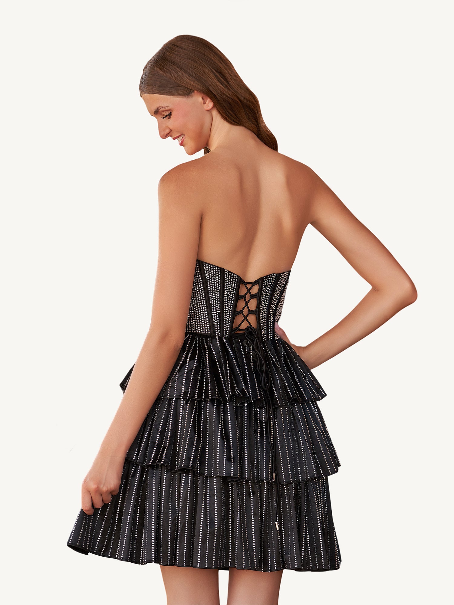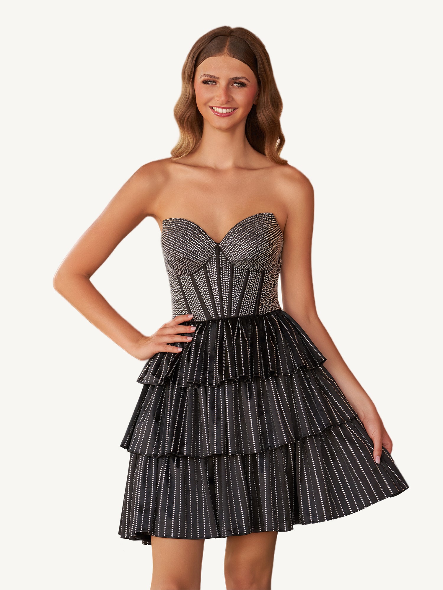 Deb | Glitter Black Strapless A-Line Corset Short Homecoming Dress with Beading