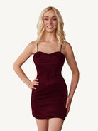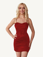 Elevate your homecoming look with Mckenna, a sheath-style sensation that's nothing short of stunning. Tailored from luxurious glitter jersey fabric, this dress shimmers from every angle. The spaghetti-strap and sweetheart neckline combo delicately balances sultry and sweet, while the sleeveless design lets you showcase your arms with poise. A unique crisscross lace-up back adds a dash of drama, ensuring all eyes are on you, even as you walk away. But it's the corset bodice with sophisticated pleats that truly steals the show, cinching you in at all the right places for an awe-inspiring silhouette. Choose Mckenna, and be the homecoming queen you've always dreamed of becoming.