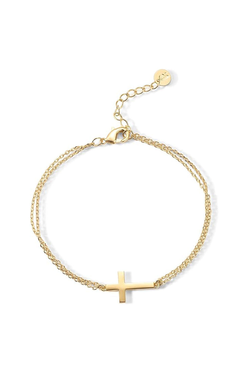 Gold Plated Sideways Cross Cubic Zirconia Station Bracelets