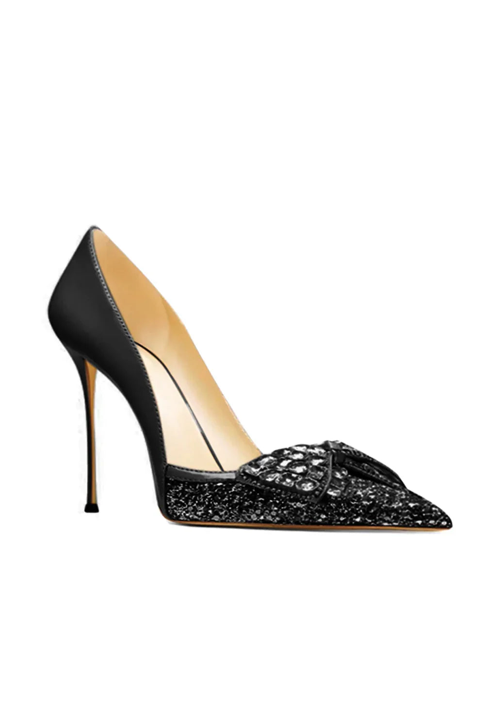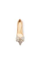 Gold Stiletto Heel Bow Mid Heel Pumps