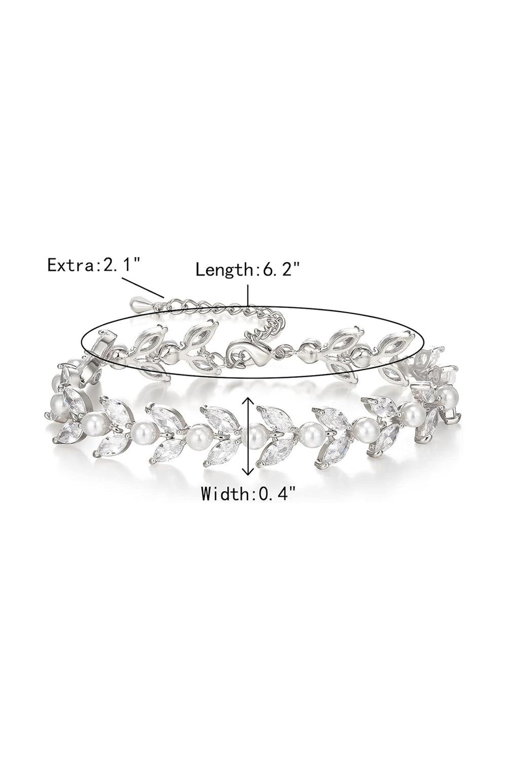 Gold Zirconia Simulated Pearl Bracelets with Leaf Filigree