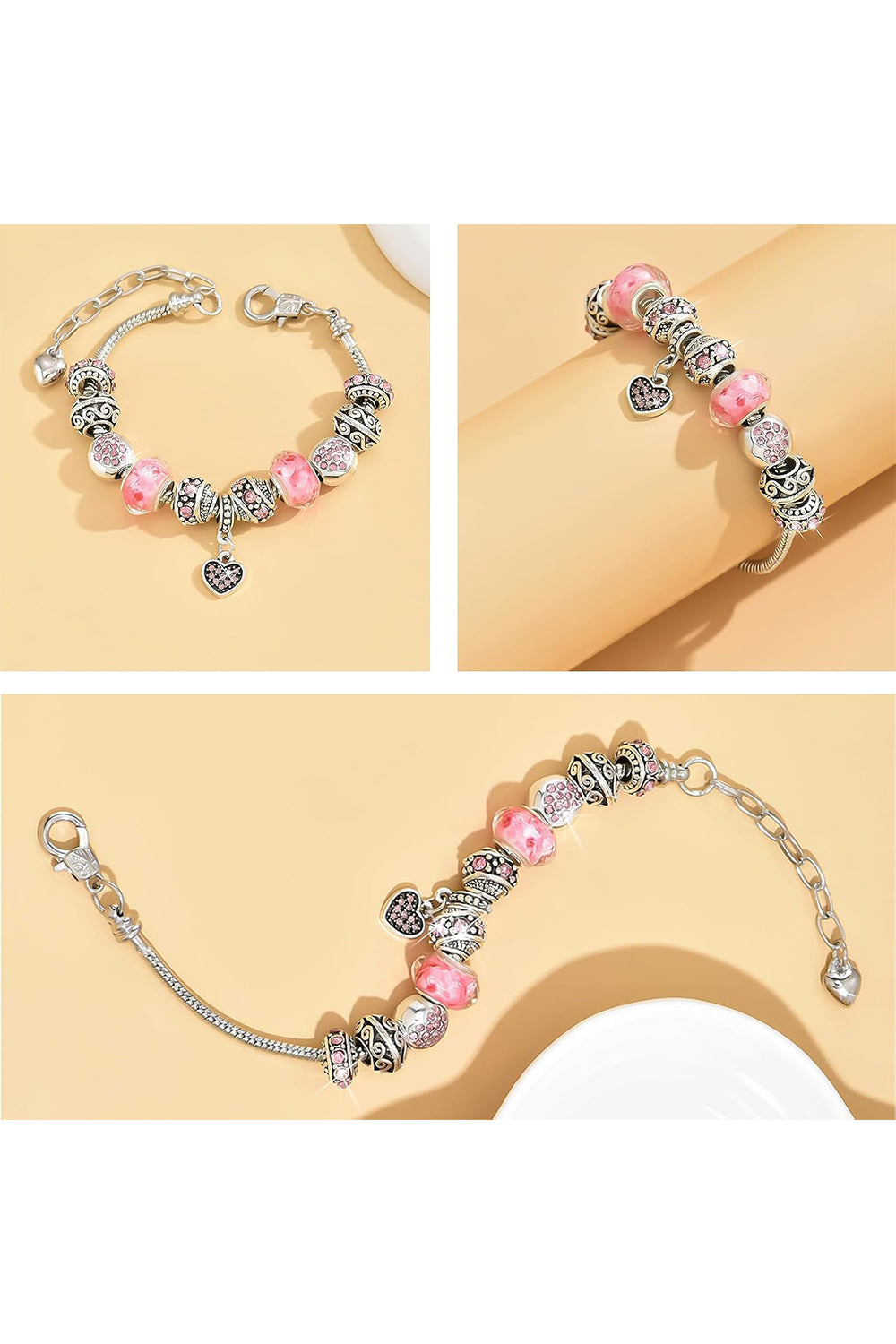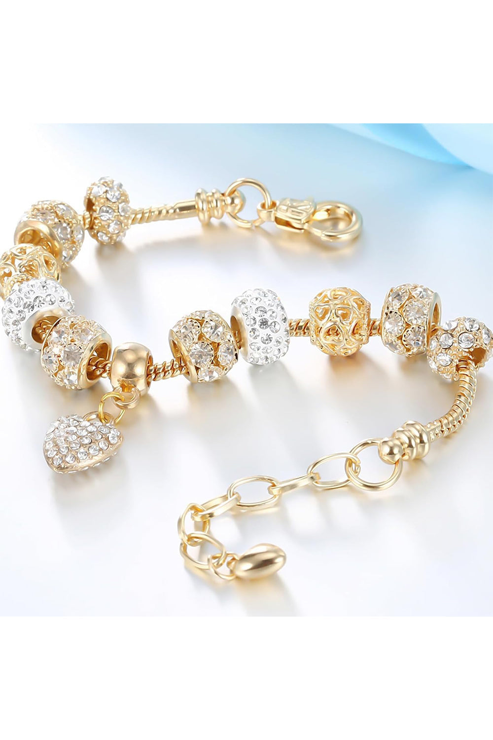 Heart Silver Plated Charm Adjustable Beaded Bracelets with Rhinestone