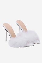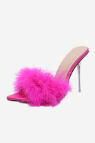 Hot Pink Feathers Pointed Toe Stiletto Sandals