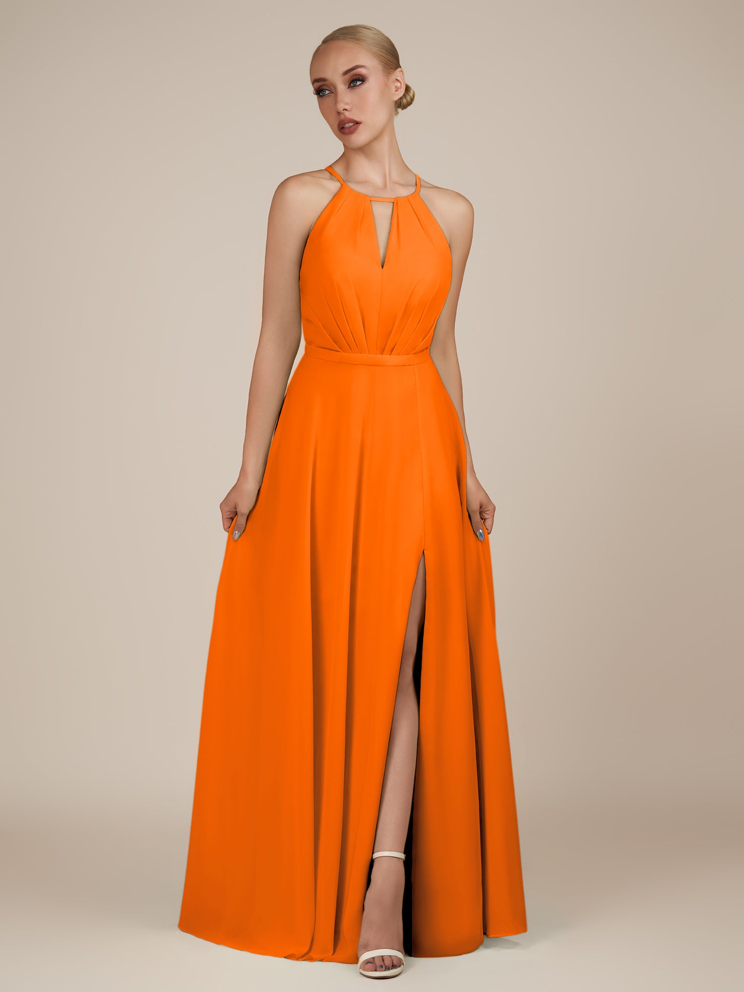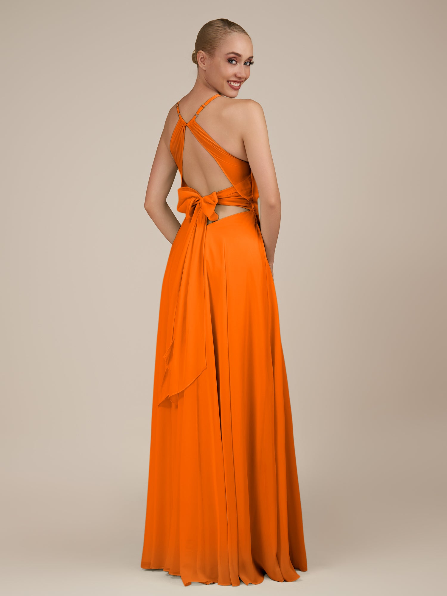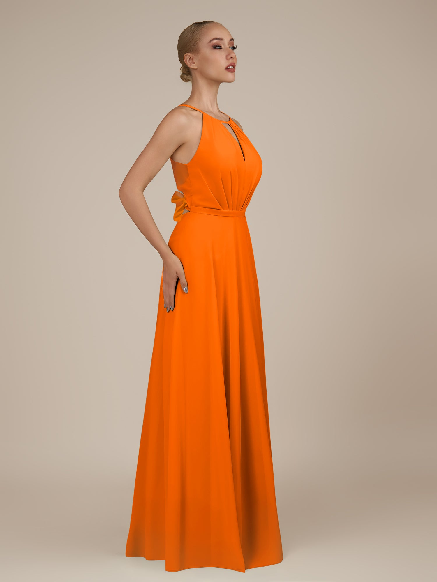 Illyria | Cinnamon - A Line Chiffon Halter Neck Long Bridesmaid Dress with Cut Out
