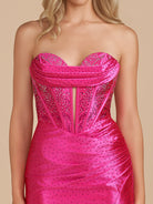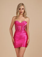 Iolite | Fuchsia - Strapless Bodycon Satin Short Homecoming Dress With Beading