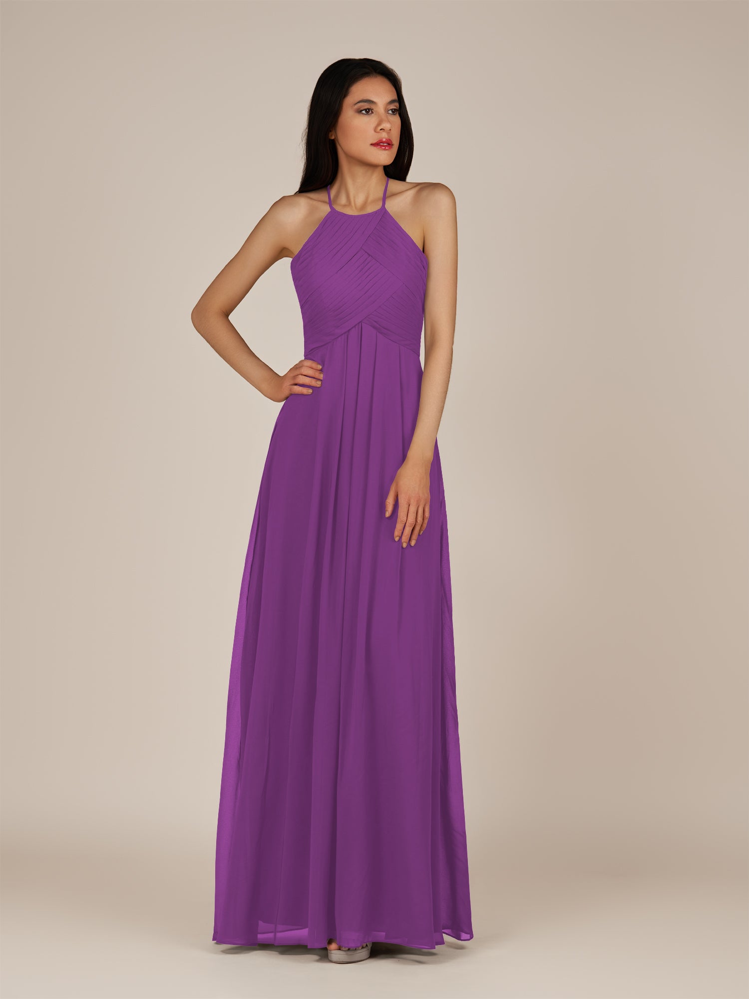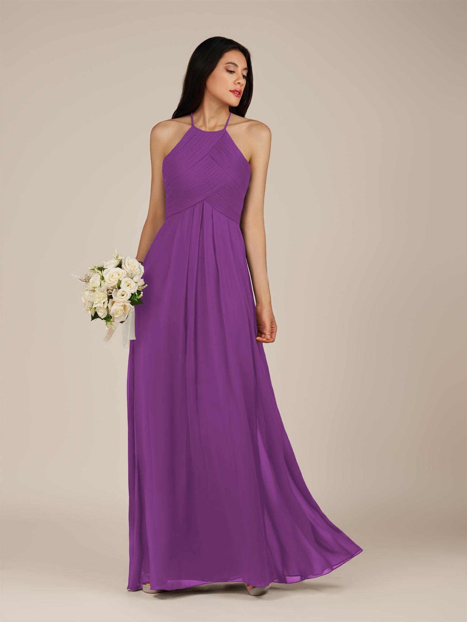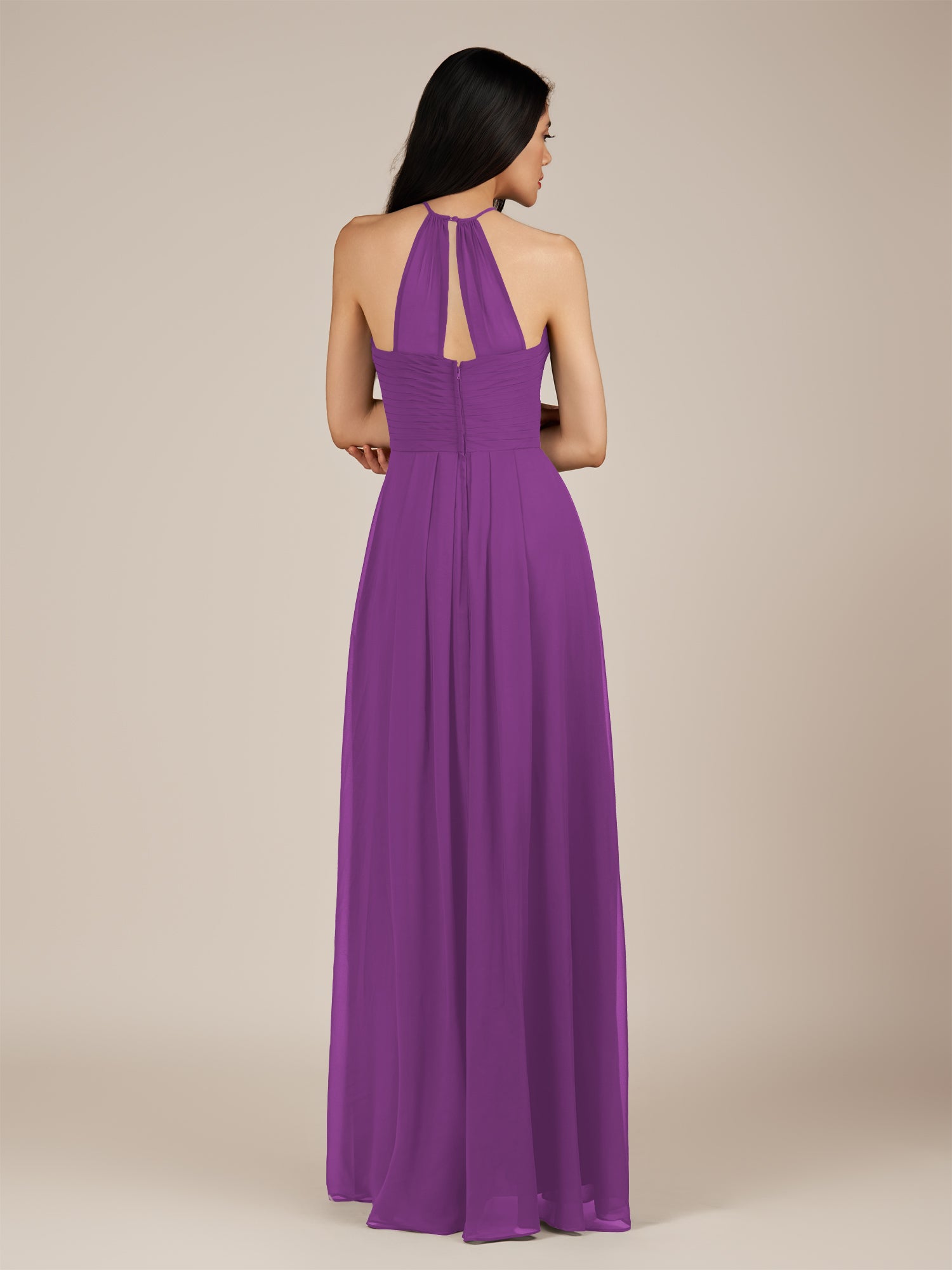 Iseult | Amethyst - A Line Chiffon Halter Neck Pleated Long Bridesmaid Dress