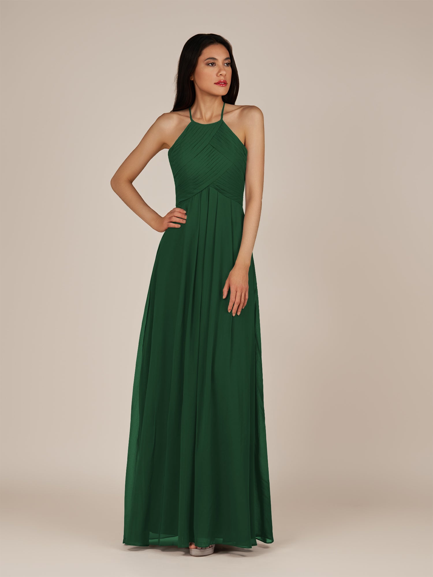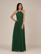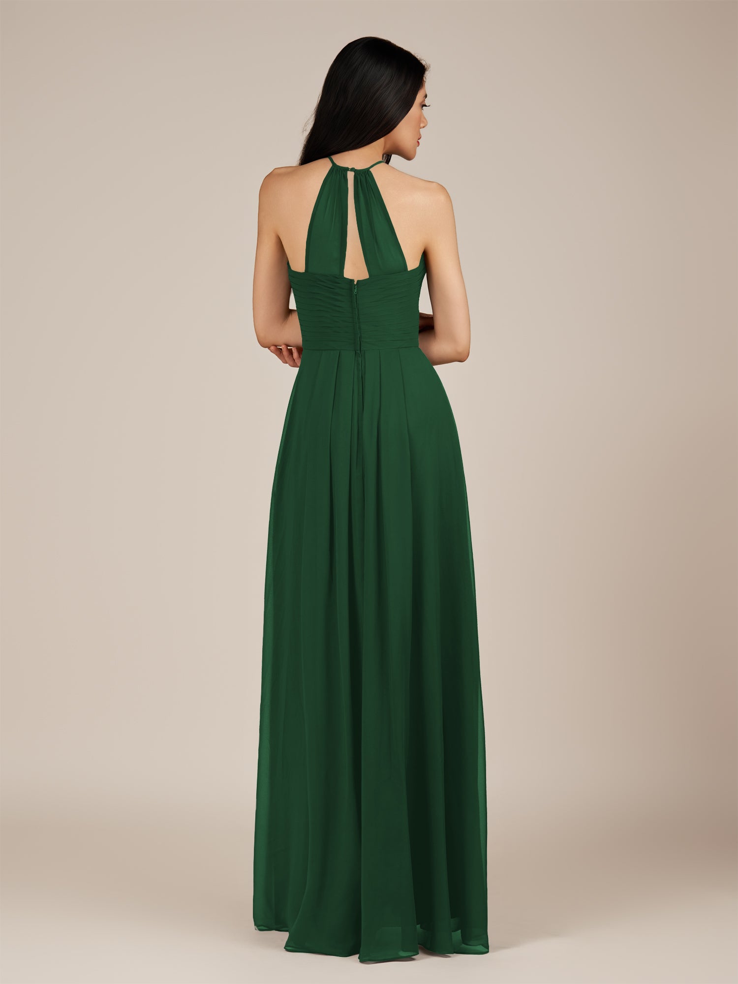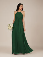 Iseult | Dark Green - A Line Chiffon Halter Neck Pleated Long Bridesmaid Dress
