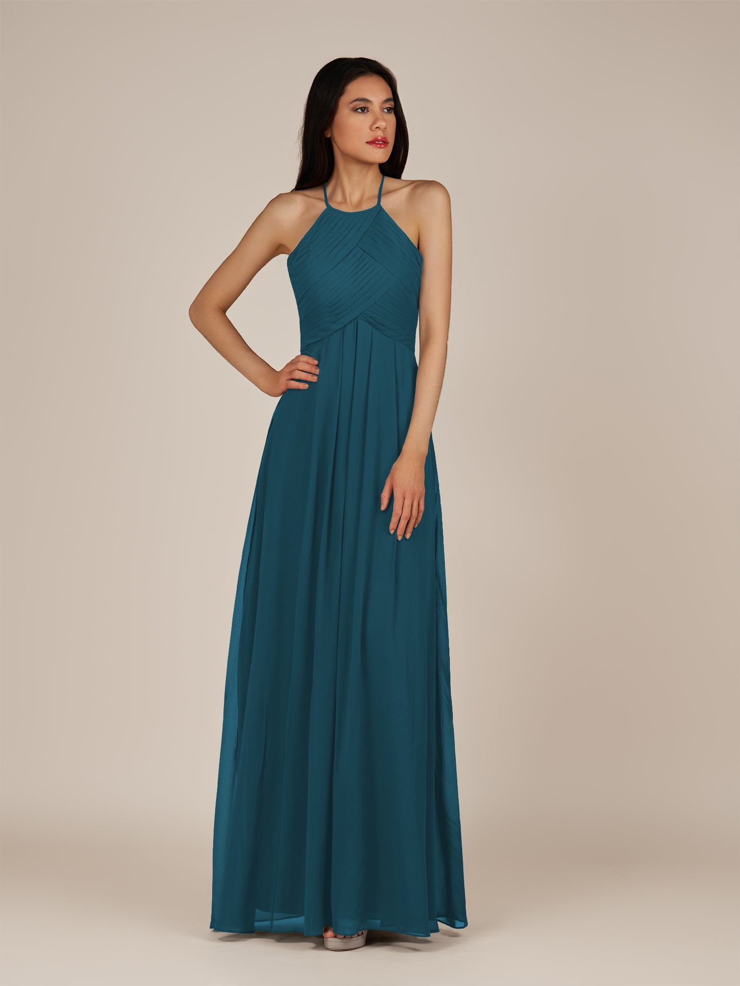 Iseult | Dark Teal - A Line Chiffon Halter Neck Pleated Long Bridesmaid Dress
