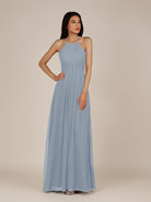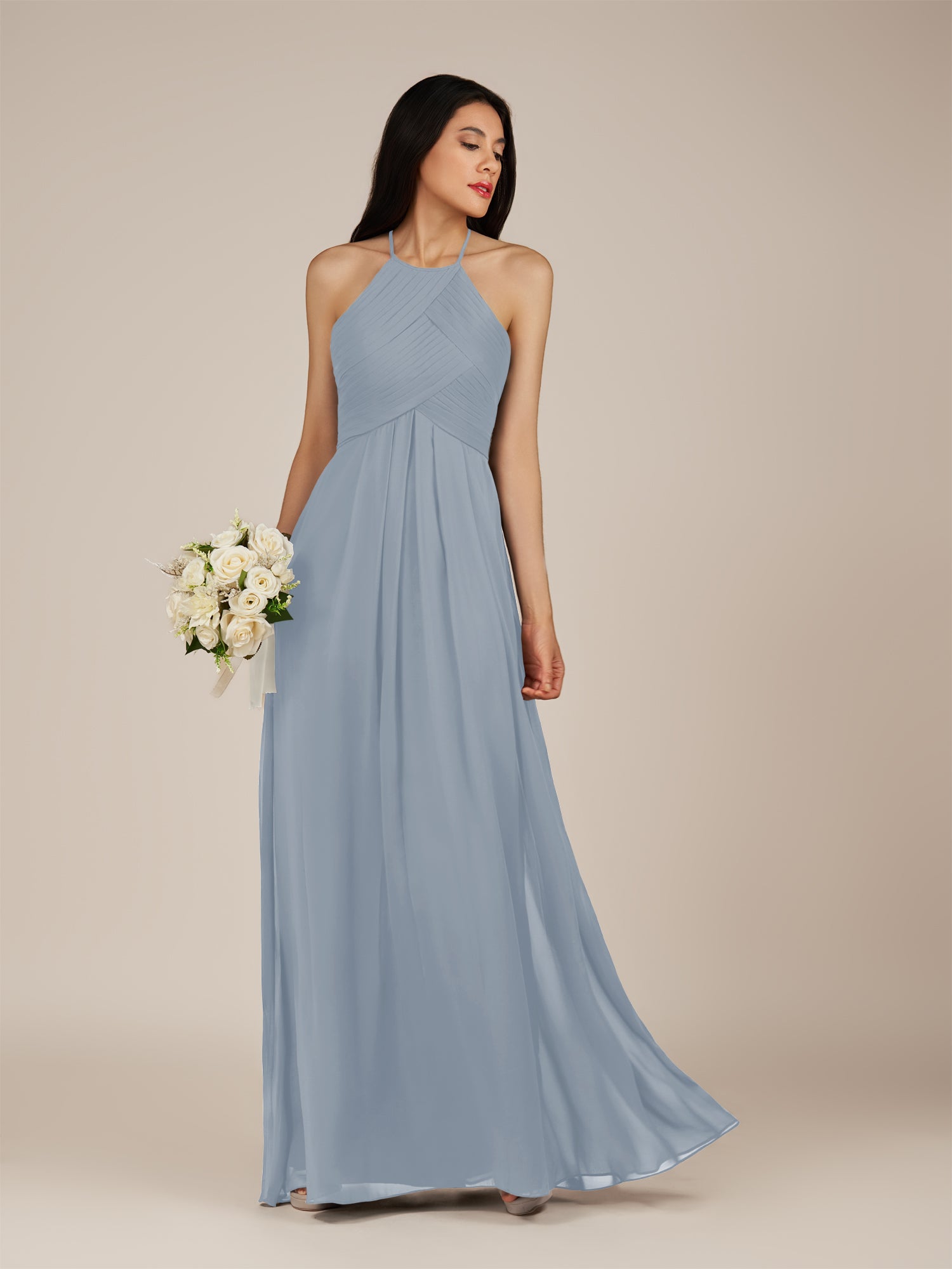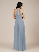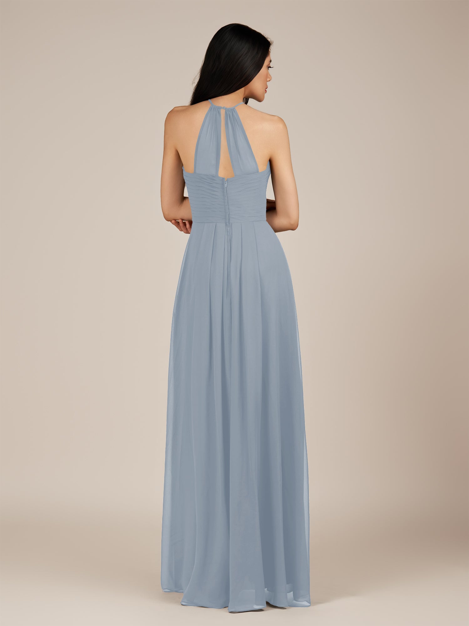 Iseult | Dusty Blue - A Line Chiffon Halter Neck Pleated Long Bridesmaid Dress