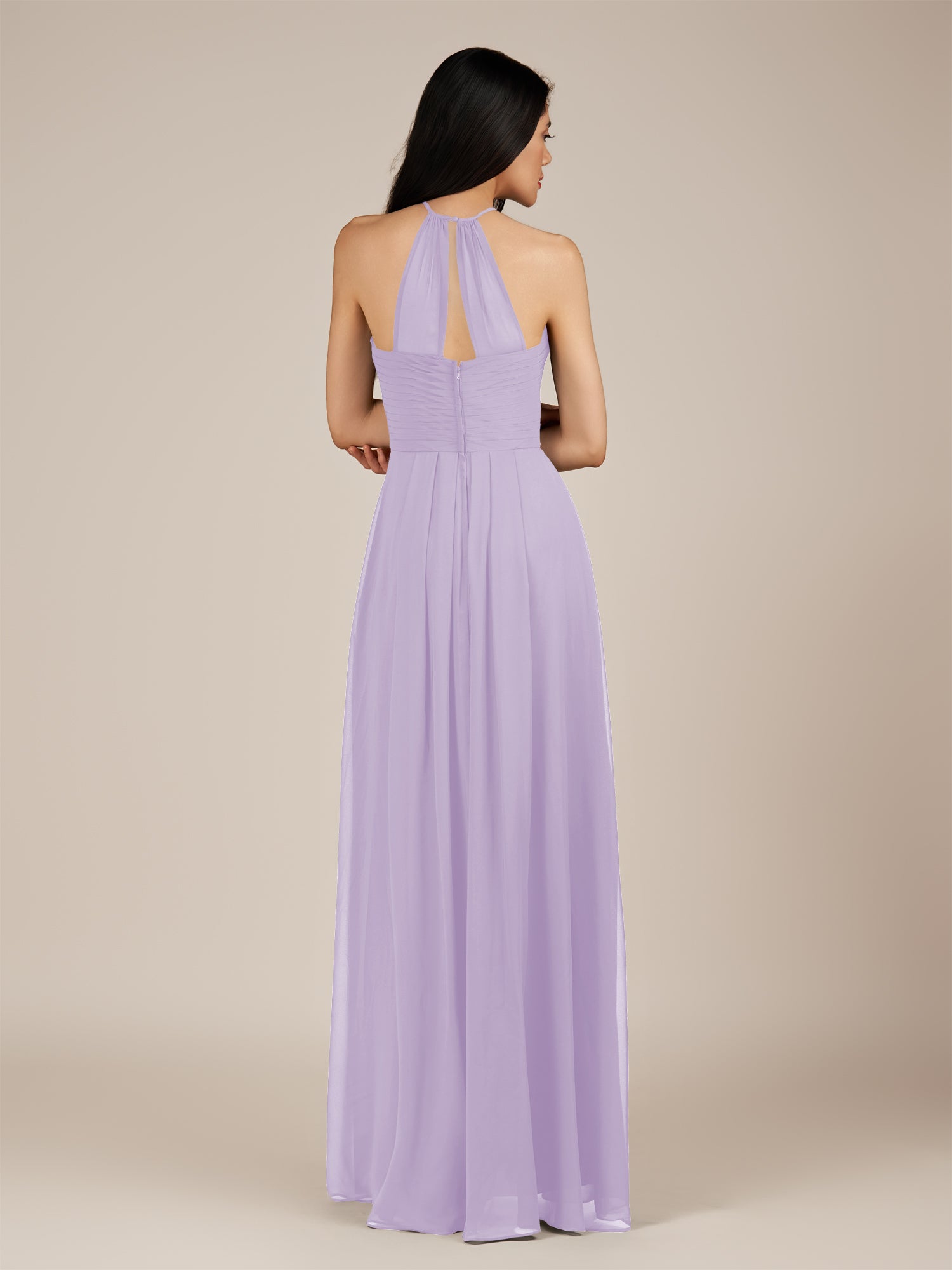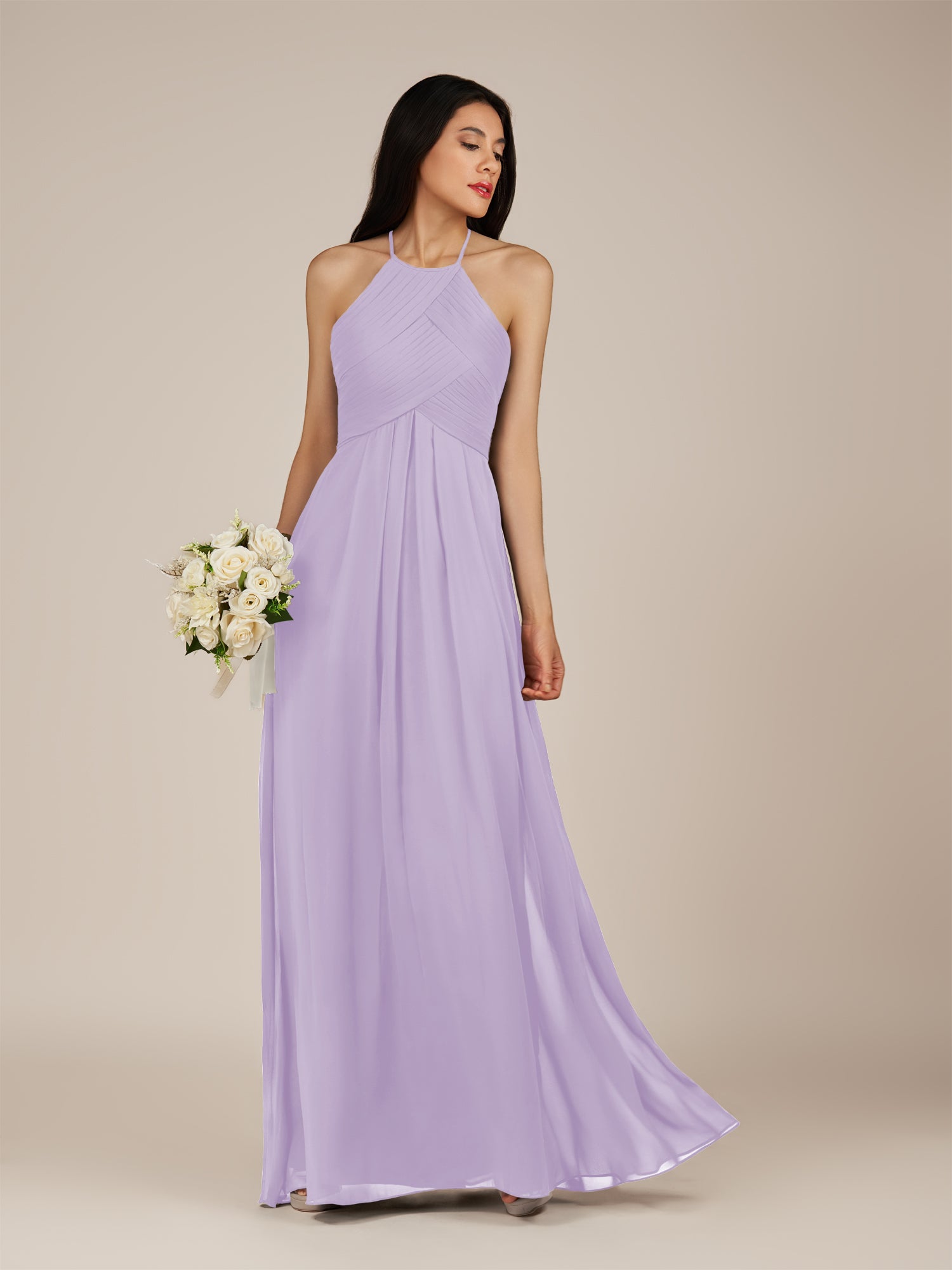 Iseult | Lavender - A Line Chiffon Halter Neck Pleated Long Bridesmaid Dress