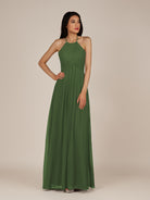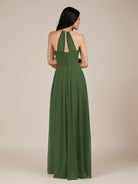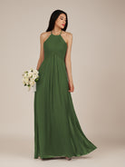 Iseult | Moss - A Line Chiffon Halter Neck Pleated Long Bridesmaid Dress