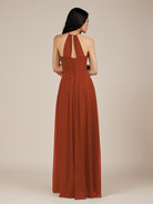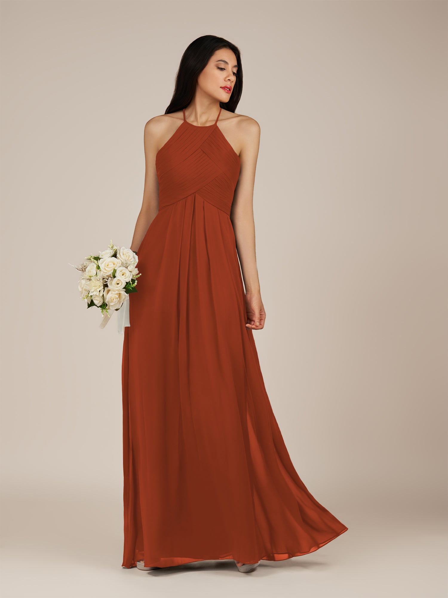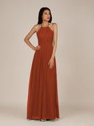 Iseult | Spice - A Line Chiffon Halter Neck Pleated Long Bridesmaid Dress