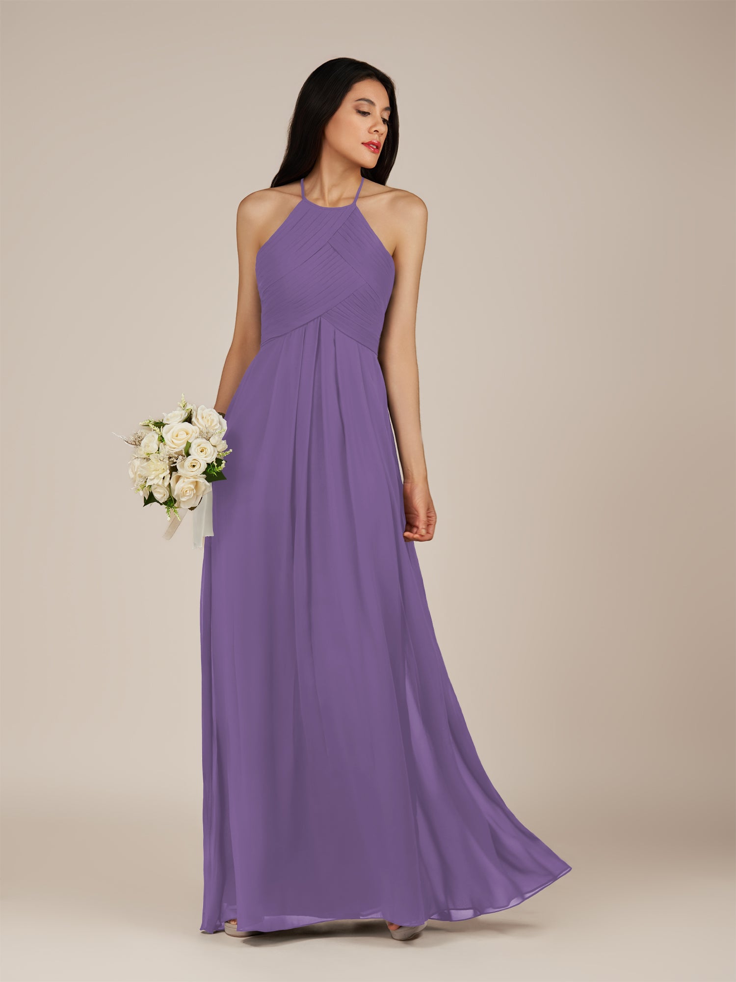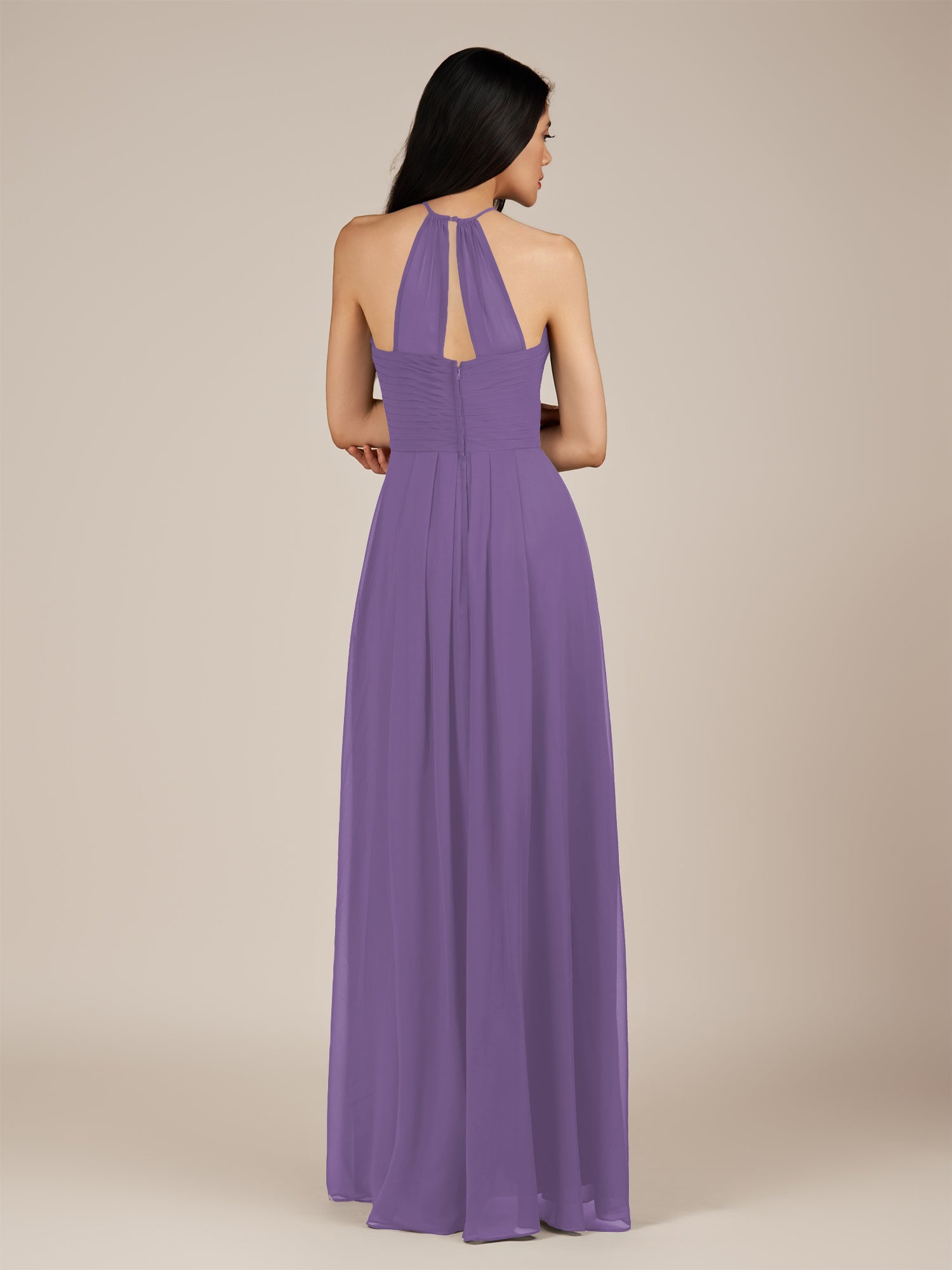 Iseult | Tahiti - A Line Chiffon Halter Neck Pleated Long Bridesmaid Dress