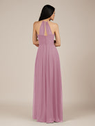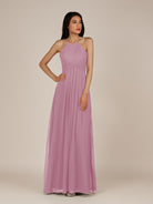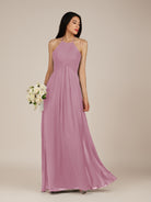 Iseult | Vintage Mauve - A Line Chiffon Halter Neck Pleated Long Bridesmaid Dress