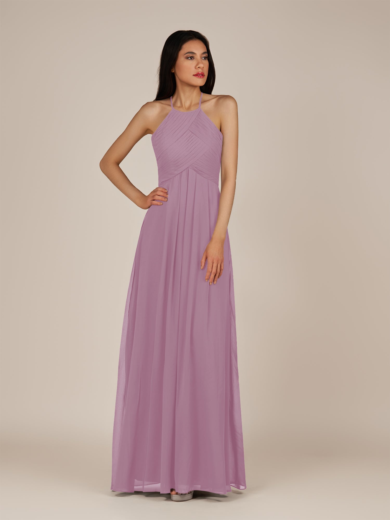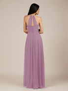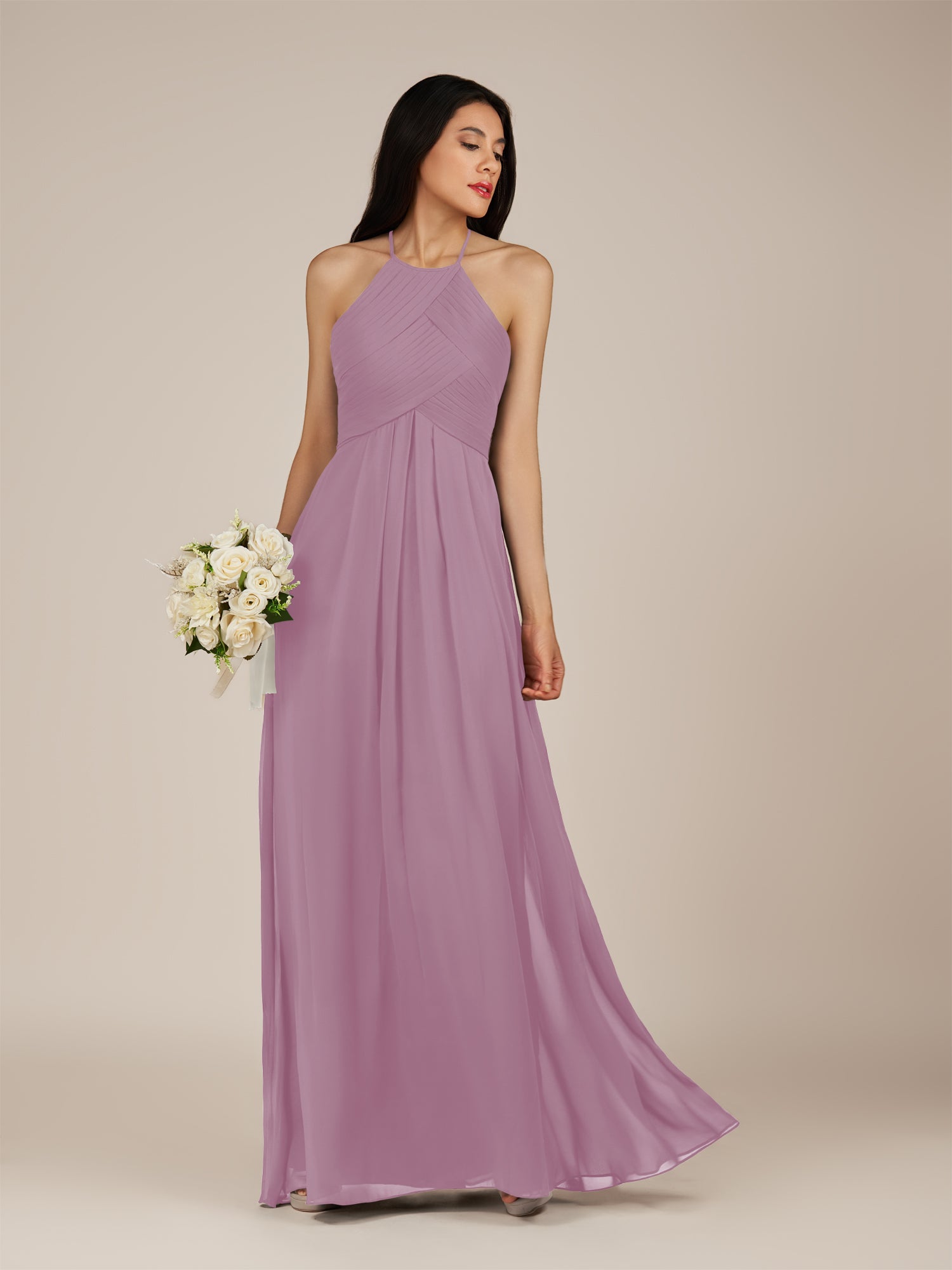 Iseult | Wisteria - A Line Chiffon Halter Neck Pleated Long Bridesmaid Dress