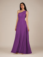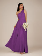 Juliet | Amethyst - A Line Chiffon One Shoulder Pleated Long Bridesmaid Dress