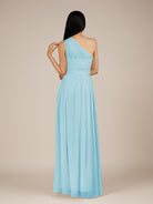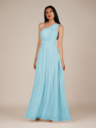 Juliet | Aqua - A Line Chiffon One Shoulder Pleated Long Bridesmaid Dress