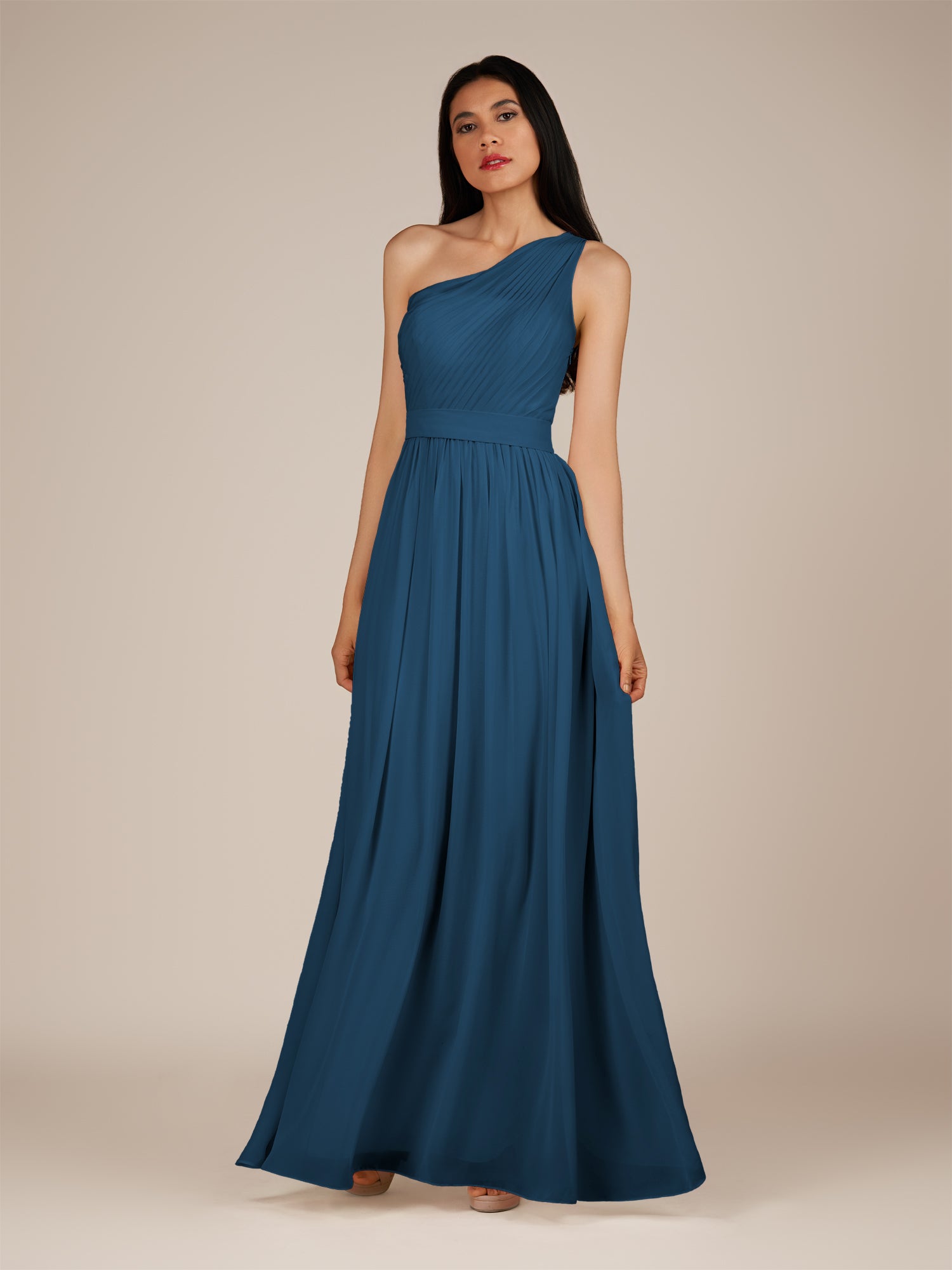 Juliet | Bermuda - A Line Chiffon One Shoulder Pleated Long Bridesmaid Dress