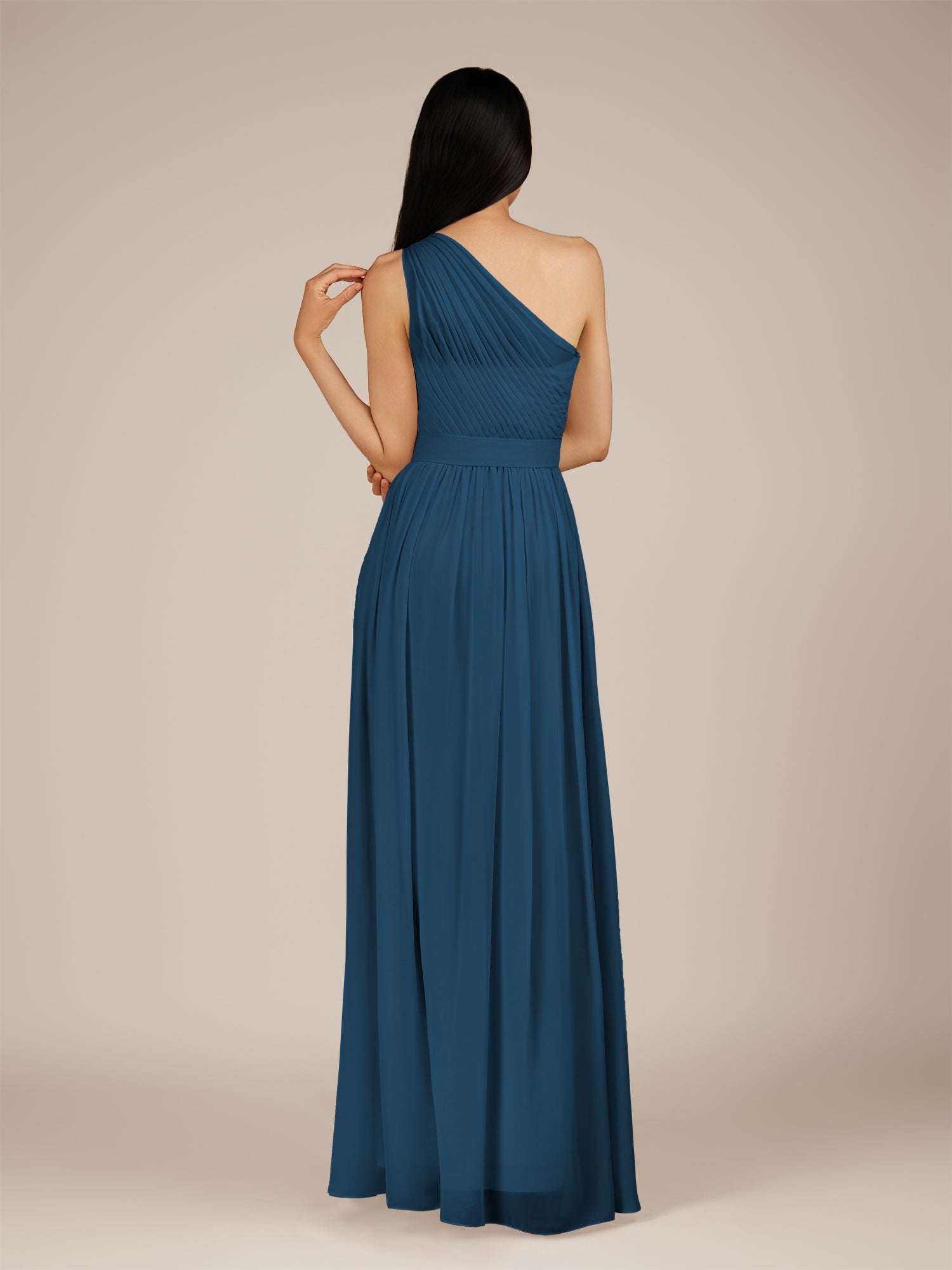 Juliet is a romantic and elegant choice for your bridal party. Crafted from soft chiffon, she features a flattering one-shoulder neckline and a delicately pleated bodice that enhances the waist. Her floor-length A-line skirt flows gracefully with every step, creating a timeless and feminine silhouette. Finished with a smooth zipper back, Juliet blends classic charm with effortless style, perfect for weddings and special occasions.