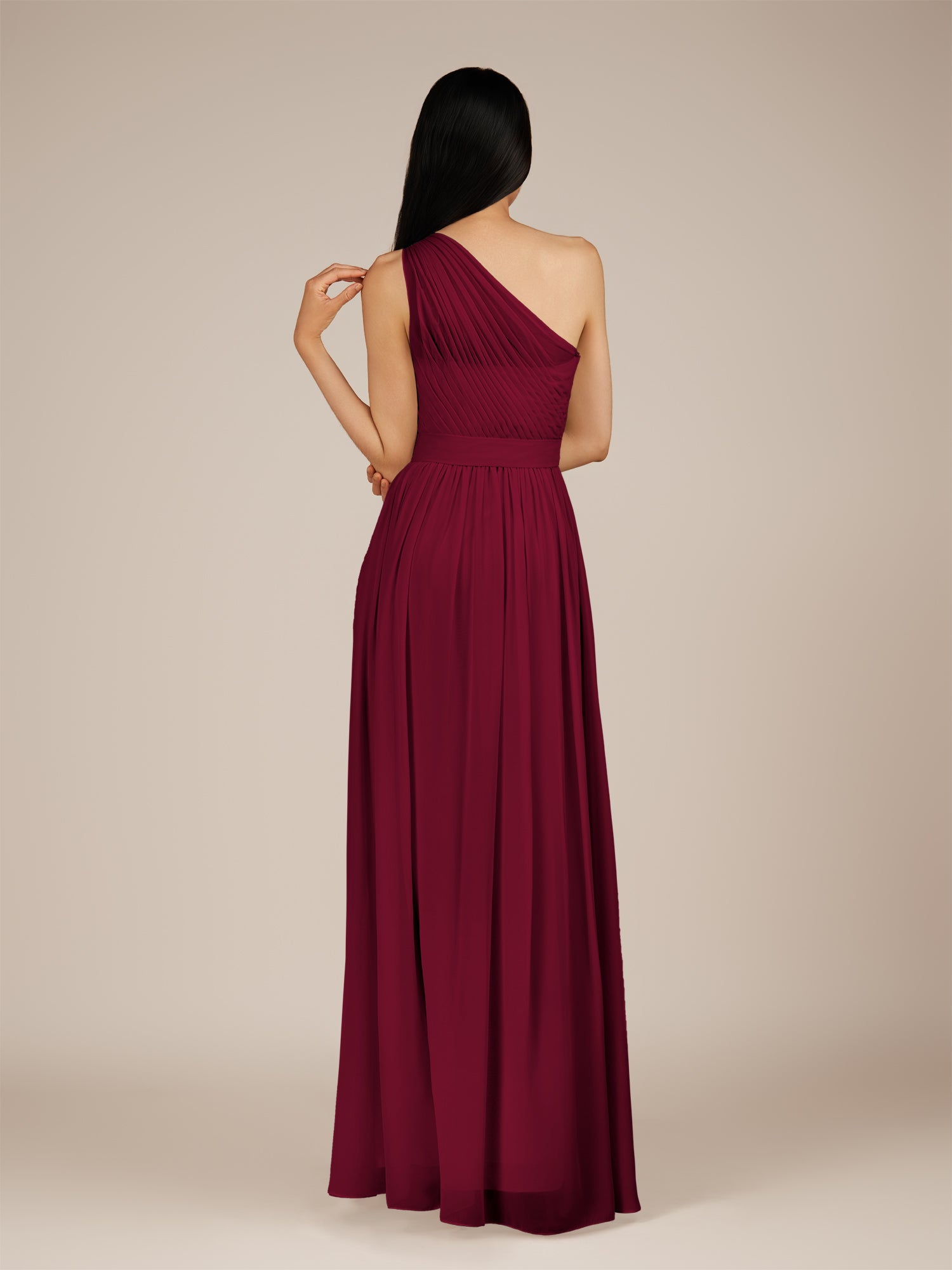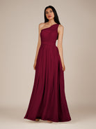 Juliet | Berry - A Line Chiffon One Shoulder Pleated Long Bridesmaid Dress
