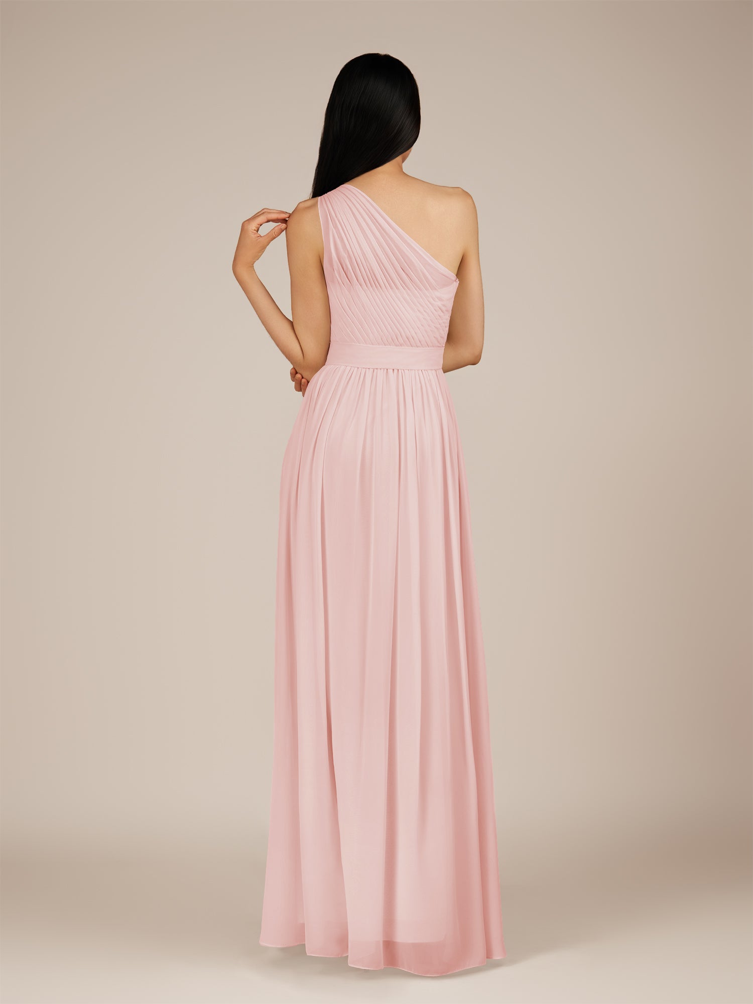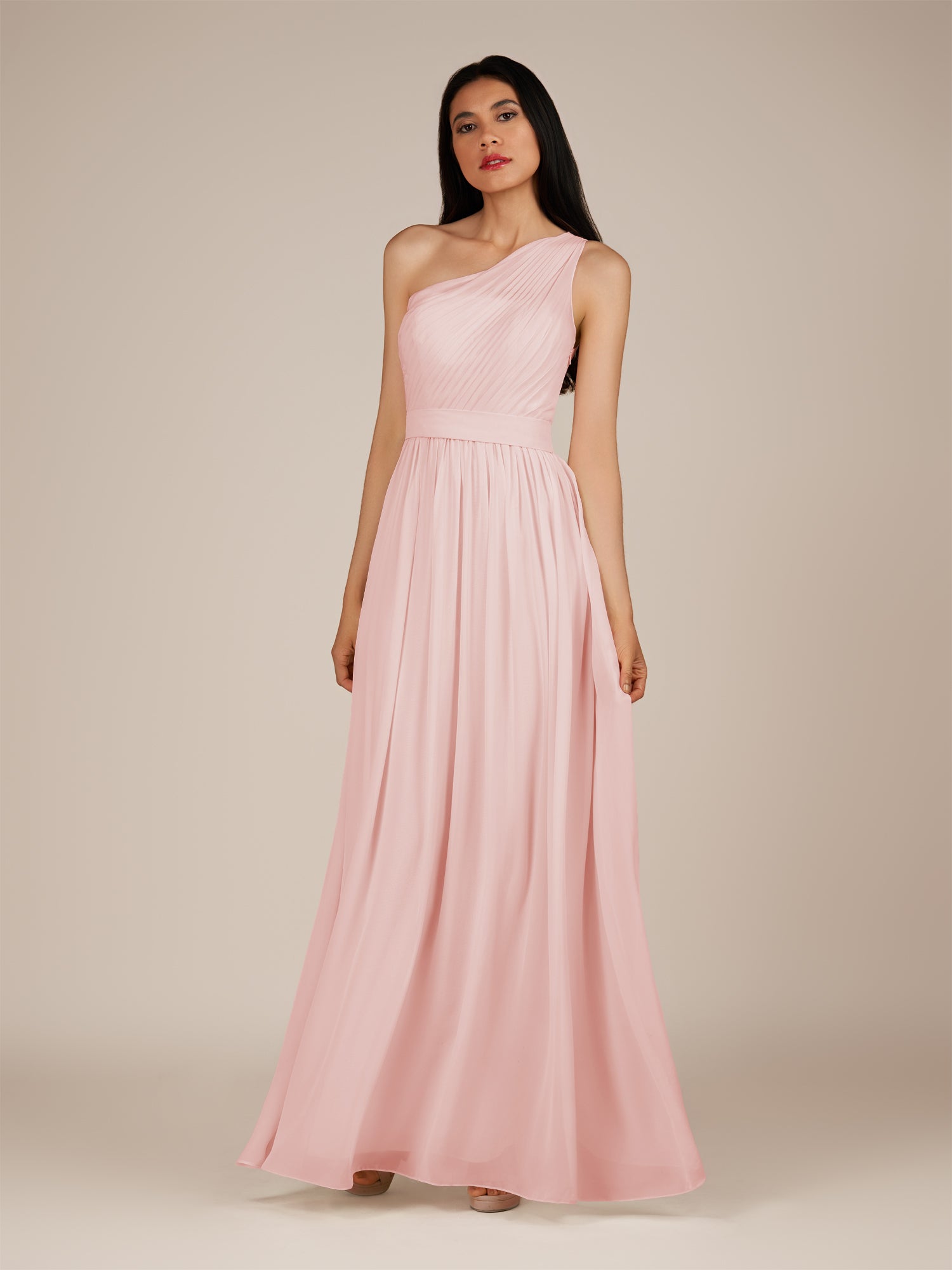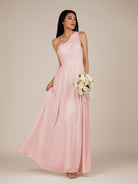 Juliet | Blush Pink - A Line Chiffon One Shoulder Pleated Long Bridesmaid Dress