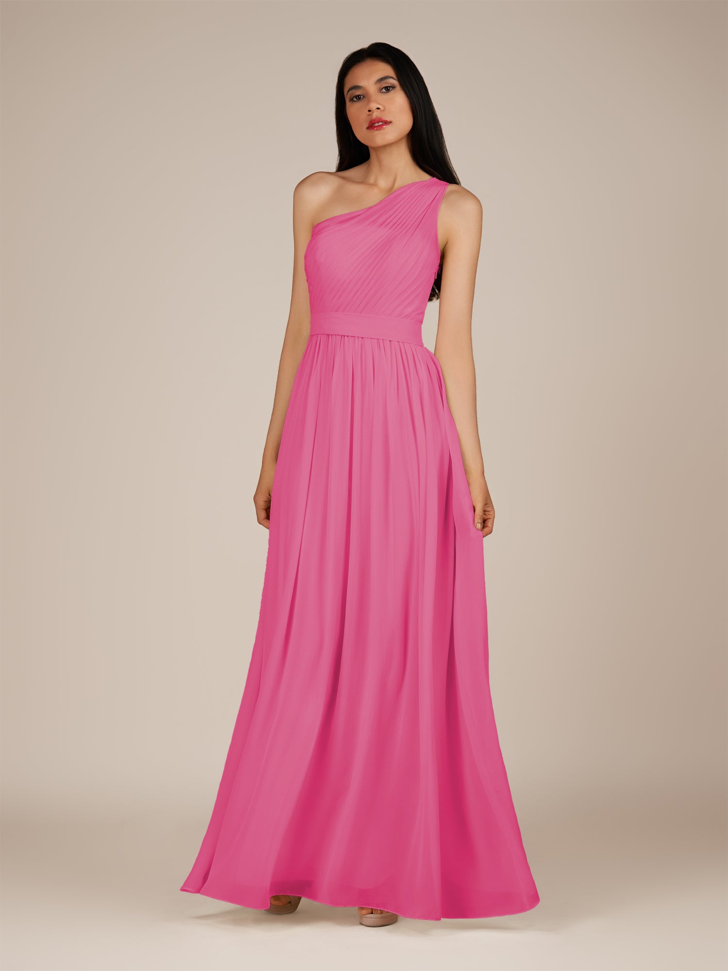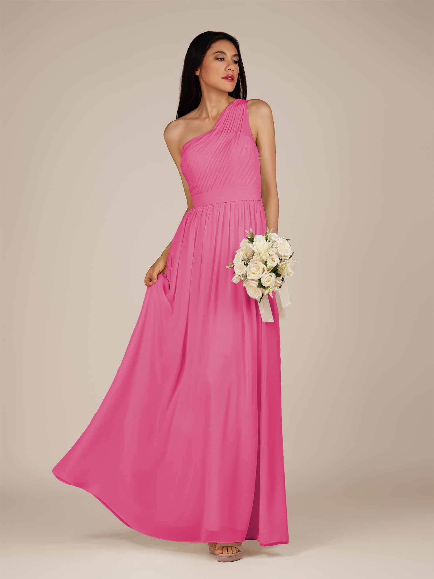 Juliet | BonBon Pink - A Line Chiffon One Shoulder Pleated Long Bridesmaid Dress