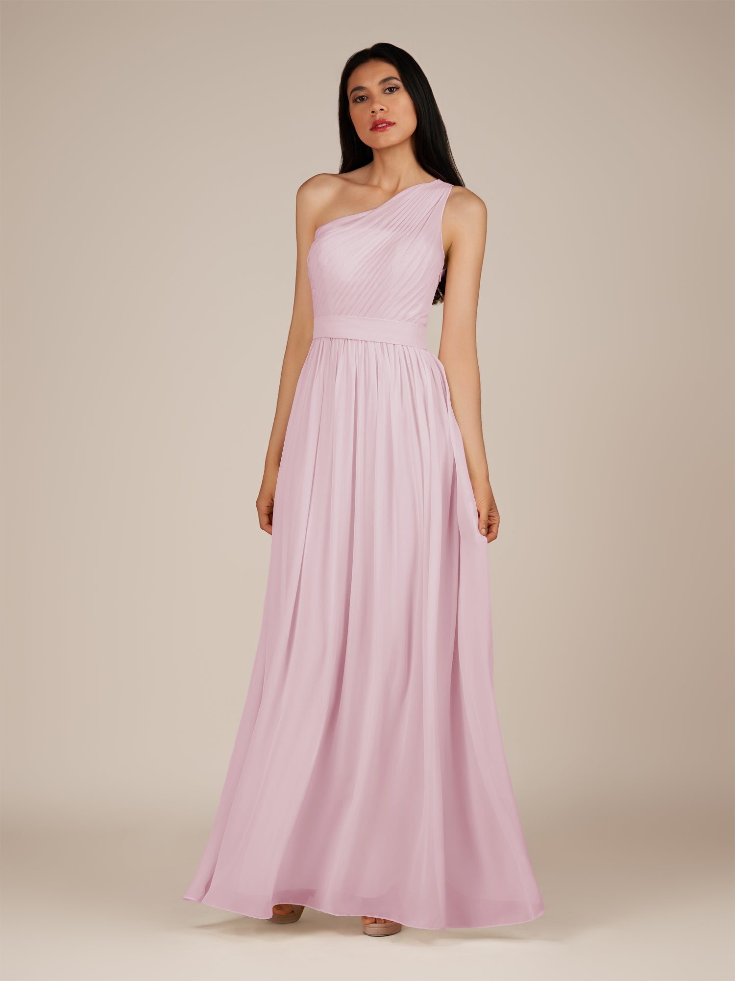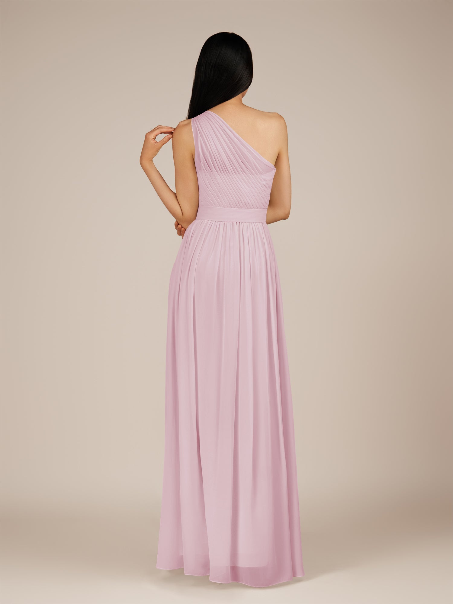 Juliet is a romantic and elegant choice for your bridal party. Crafted from soft chiffon, she features a flattering one-shoulder neckline and a delicately pleated bodice that enhances the waist. Her floor-length A-line skirt flows gracefully with every step, creating a timeless and feminine silhouette. Finished with a smooth zipper back, Juliet blends classic charm with effortless style, perfect for weddings and special occasions.
