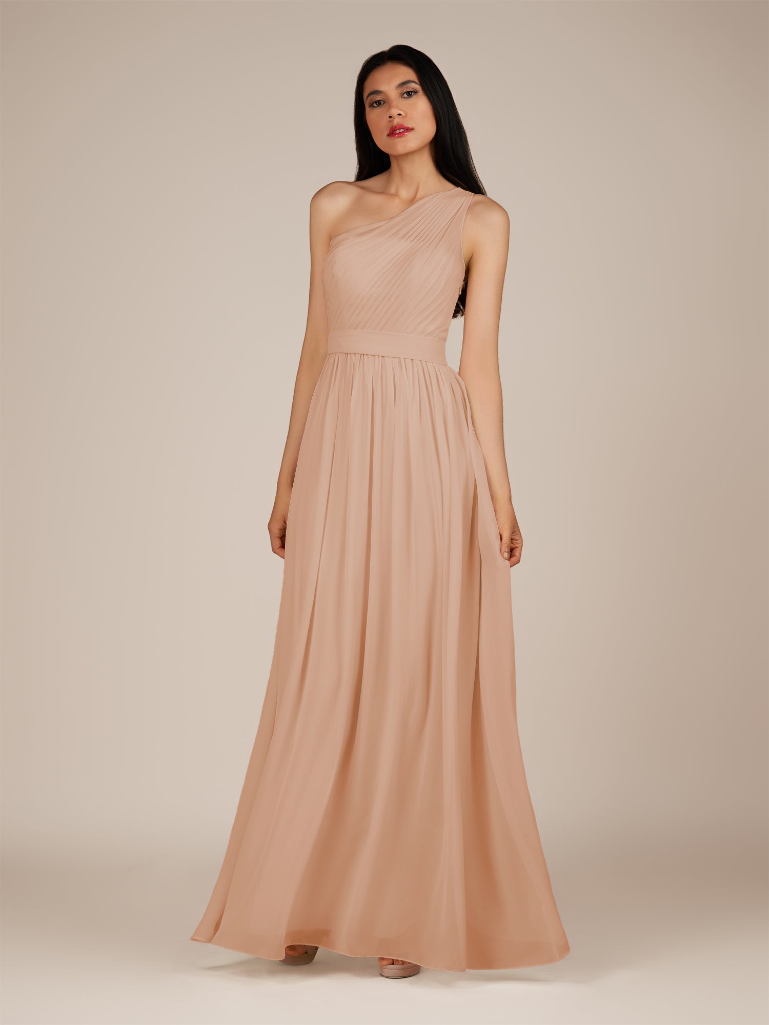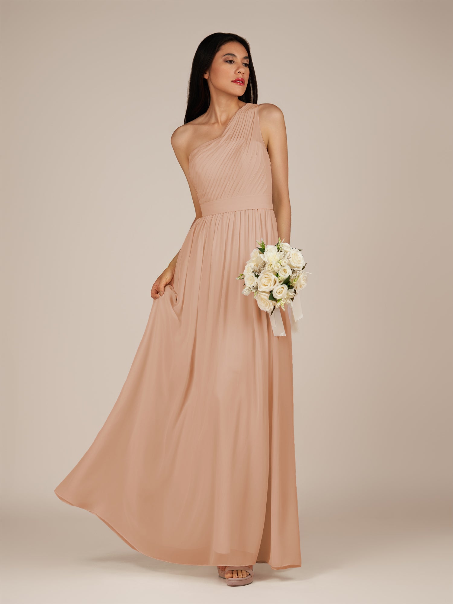 Juliet | Champagne Rose - A Line Chiffon One Shoulder Pleated Long Bridesmaid Dress