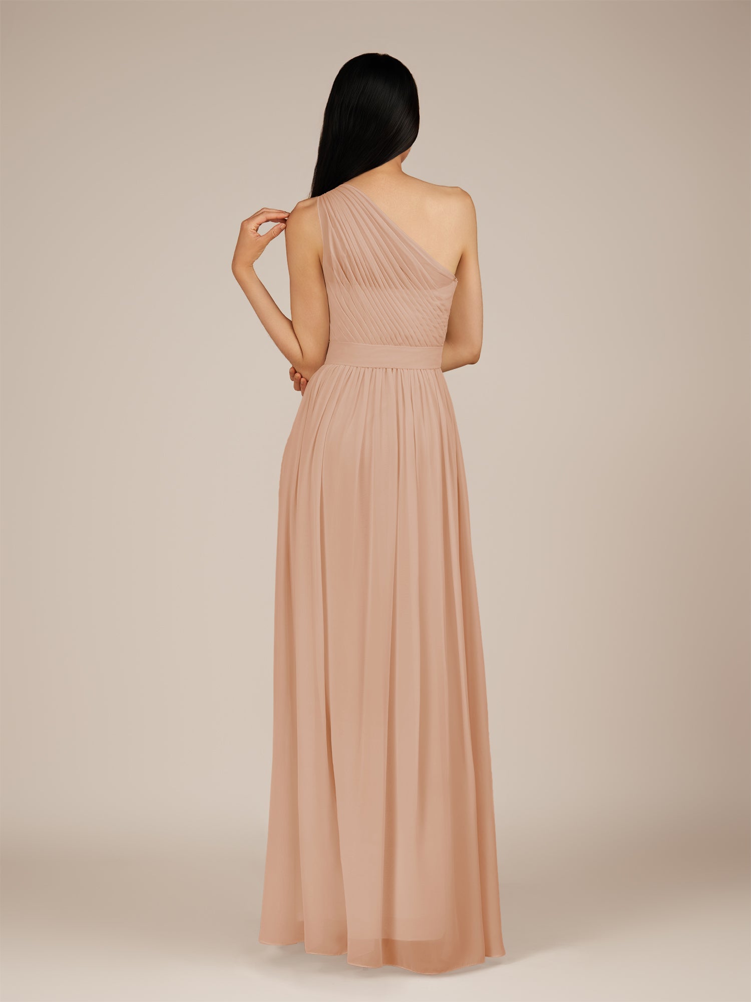 Juliet is a romantic and elegant choice for your bridal party. Crafted from soft chiffon, she features a flattering one-shoulder neckline and a delicately pleated bodice that enhances the waist. Her floor-length A-line skirt flows gracefully with every step, creating a timeless and feminine silhouette. Finished with a smooth zipper back, Juliet blends classic charm with effortless style, perfect for weddings and special occasions.